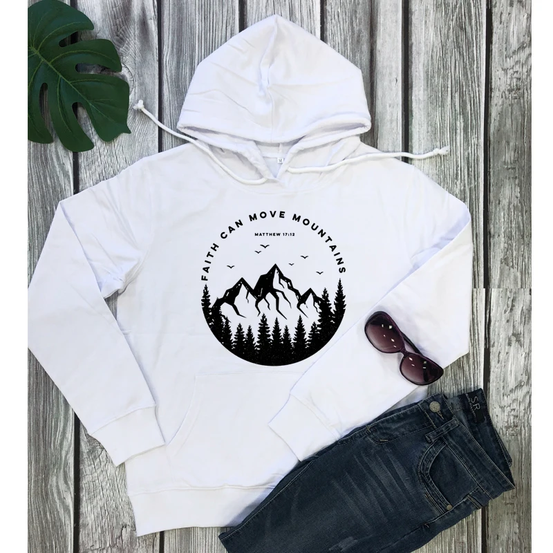 100% хлопок вера может свернуть горы Толстовка на каждый день женские джемпер с длинными рукавами и капюшоном, Кристиан пеший Туризм Толстовка в уличном стиле