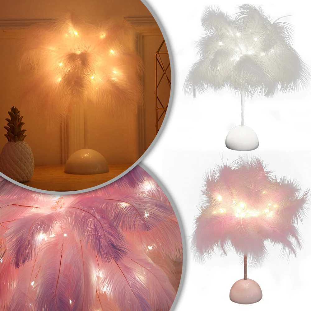 feature 5material of the small lamp: artificial feather + plastic base
