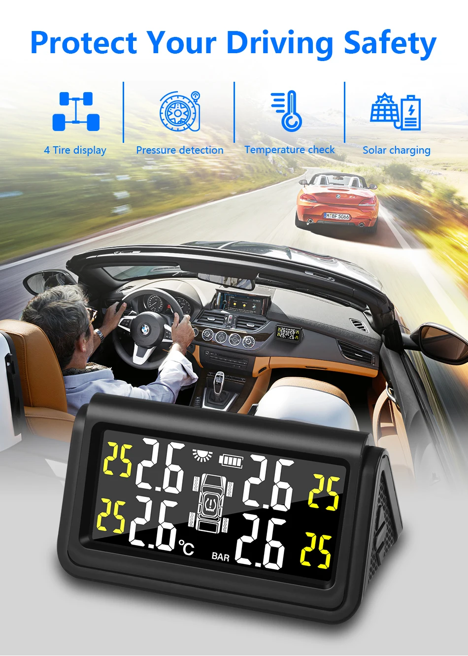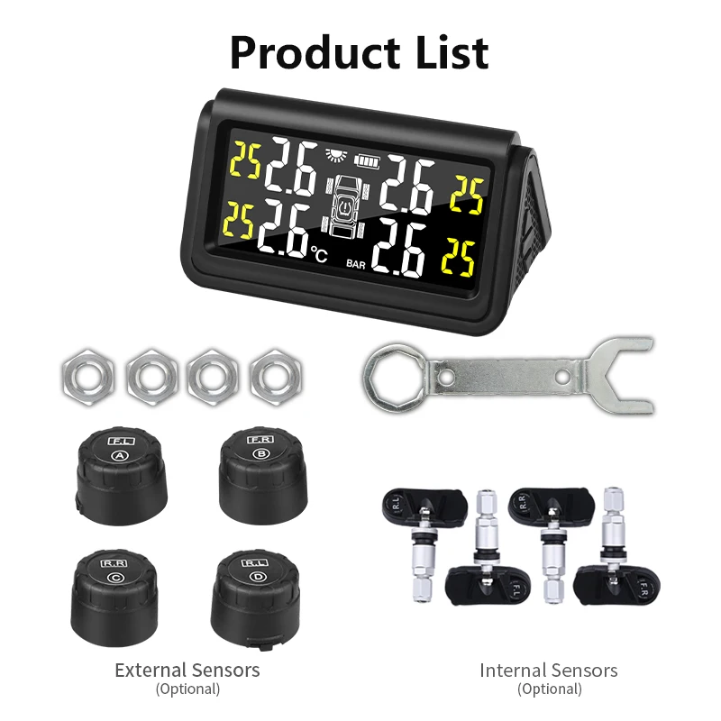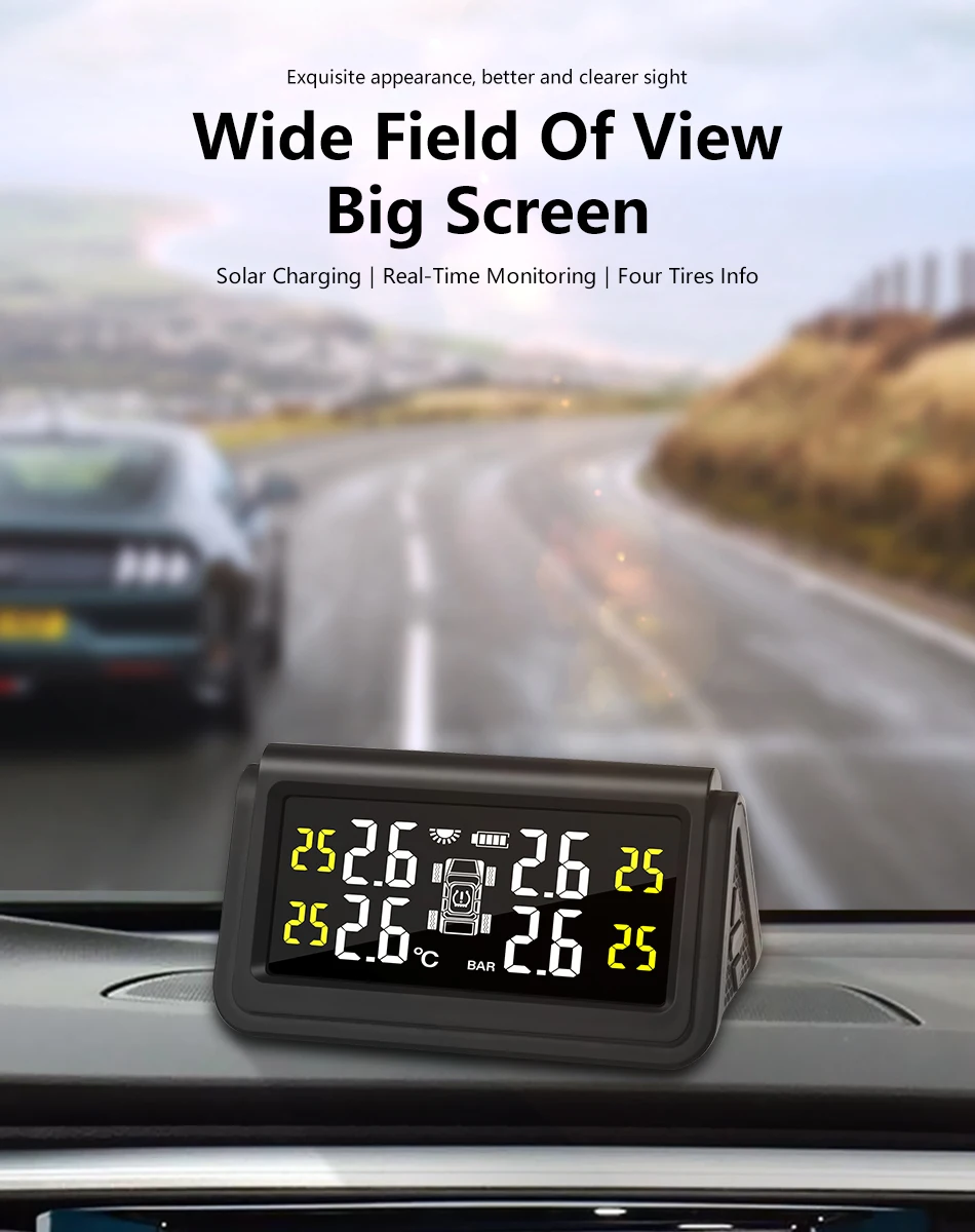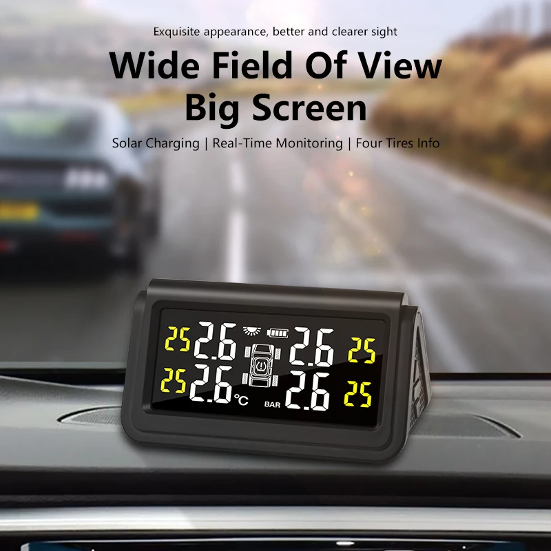 Система контроля давления в шинах Jansite, большой экран, на солнечной батарее, цифровой дисплей, 4 датчика