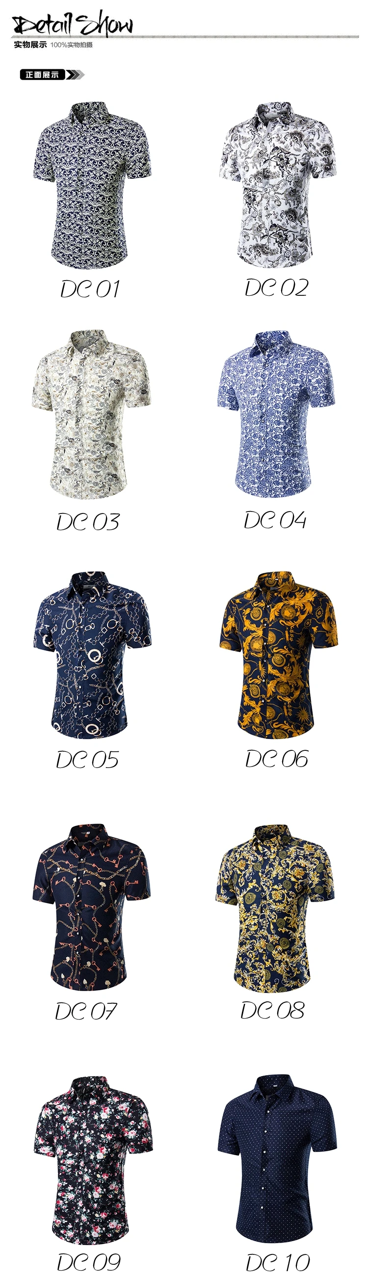Летняя мужская мода 2021, золотые Роскошные Дизайнерские рубашки для мужчин, набор, необычная Гавайская пляжная одежда с цветочным принтом, мужские рубашки с коротким рукавом для клуба