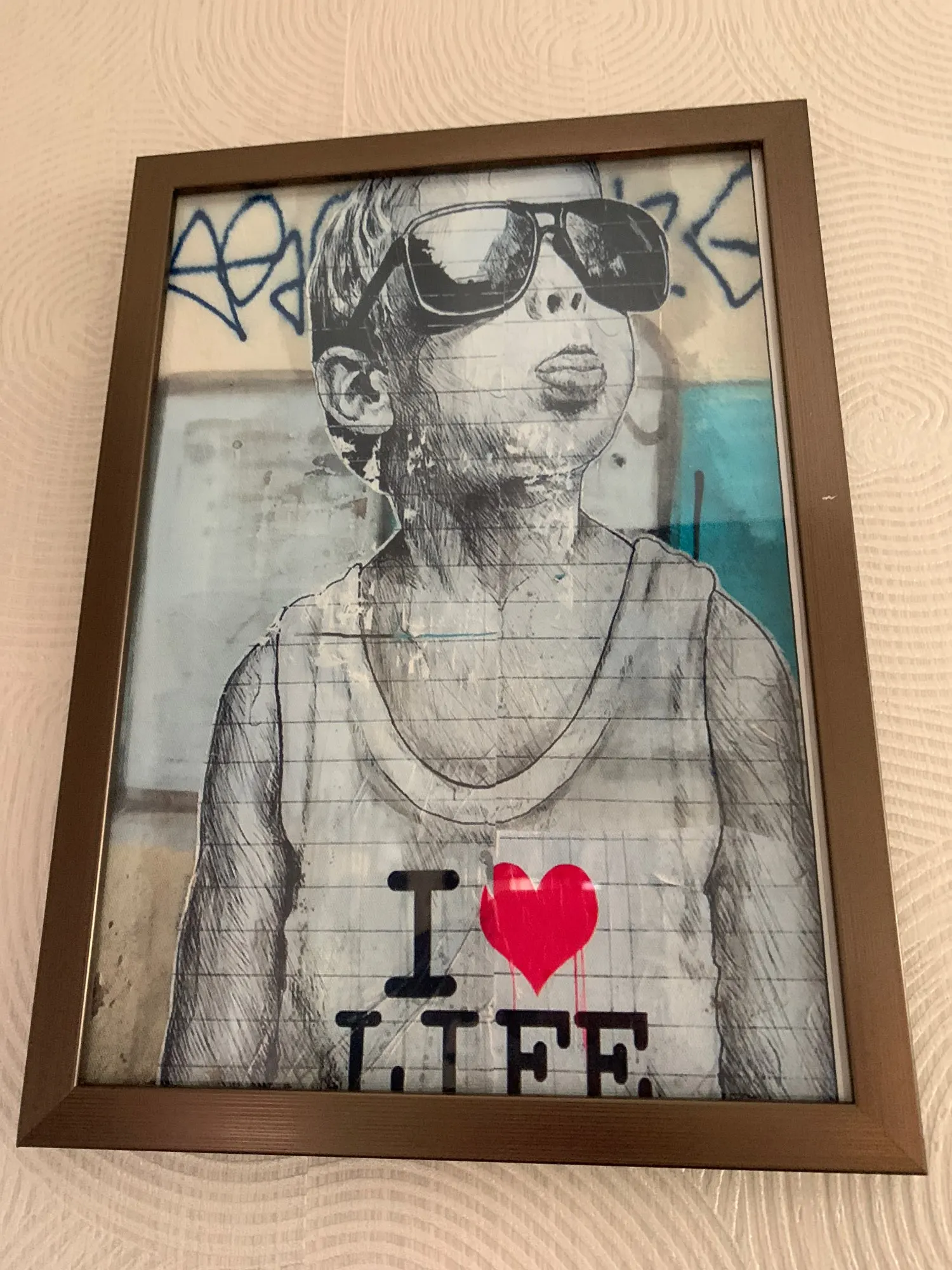 Хороший принт. Цвета Vivid. К сожалению, на кромке нет разницы (белое пространство). У вас есть вырезы. При его обрамлении, вы должны обернуть Холст картину вокруг рамки.