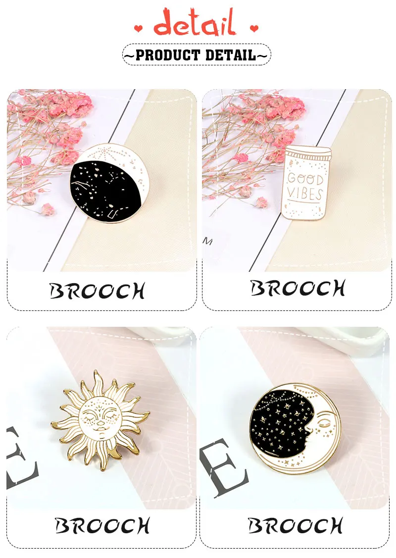 Круглая Винтажная брошь, солнце и луна, звезда, океанская волна, эмалированная булавка, мультяшный значок для кемпинга для женщин, мужчин, рубашек, джинсовые булавки для лацканов, ювелирные изделия