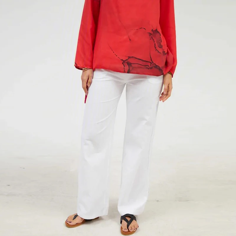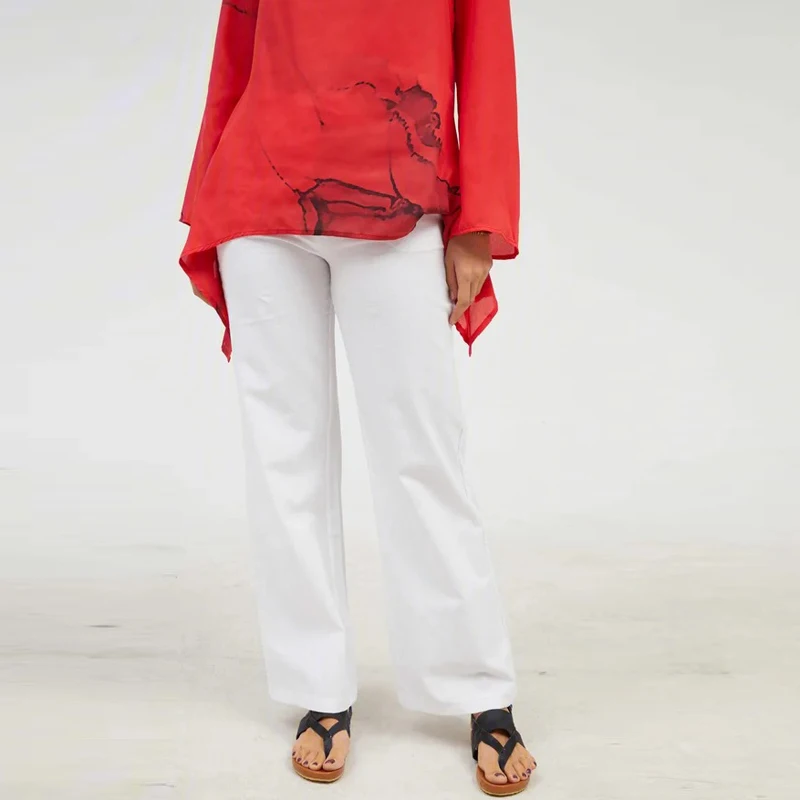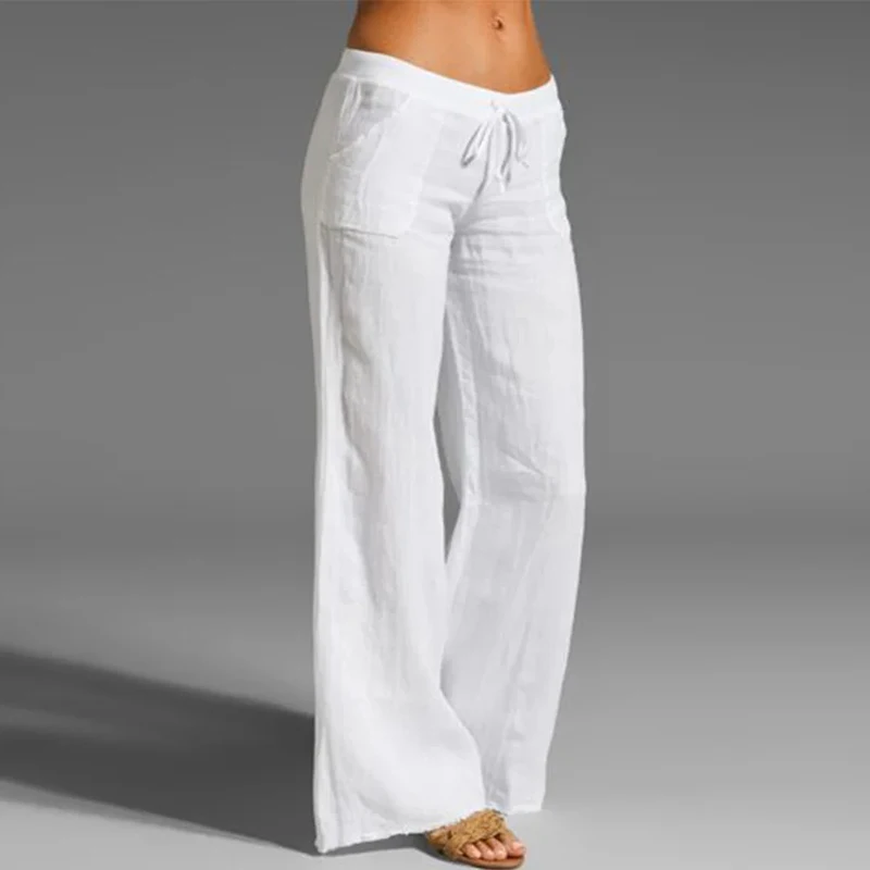Брюки женские из хлопка и льна, модные белые повседневные свободные штаны с эластичным завышенным поясом и карманами, летняя одежда