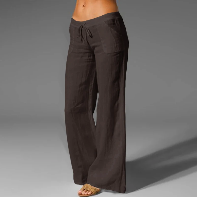 Брюки женские с широкими штанинами, повседневные хлопково-льняные с...