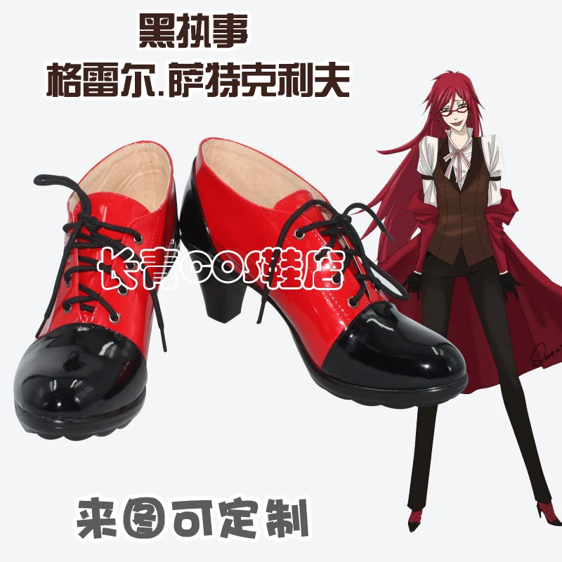 Сапоги на заказ черный Батлер Грелл сутскаф косплей обувь на заказ любого размера аниме ботинки для вечевечерние НКИ парик и очки на Хэллоуин