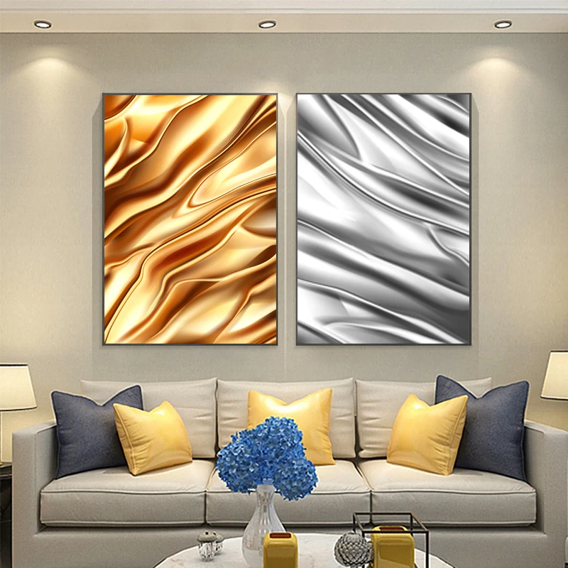 Абстрактная художественная Фольга Золотая Серебряная холст картина на стену художественные плакаты печатные настенные картины для гостиной домашние настенные картины