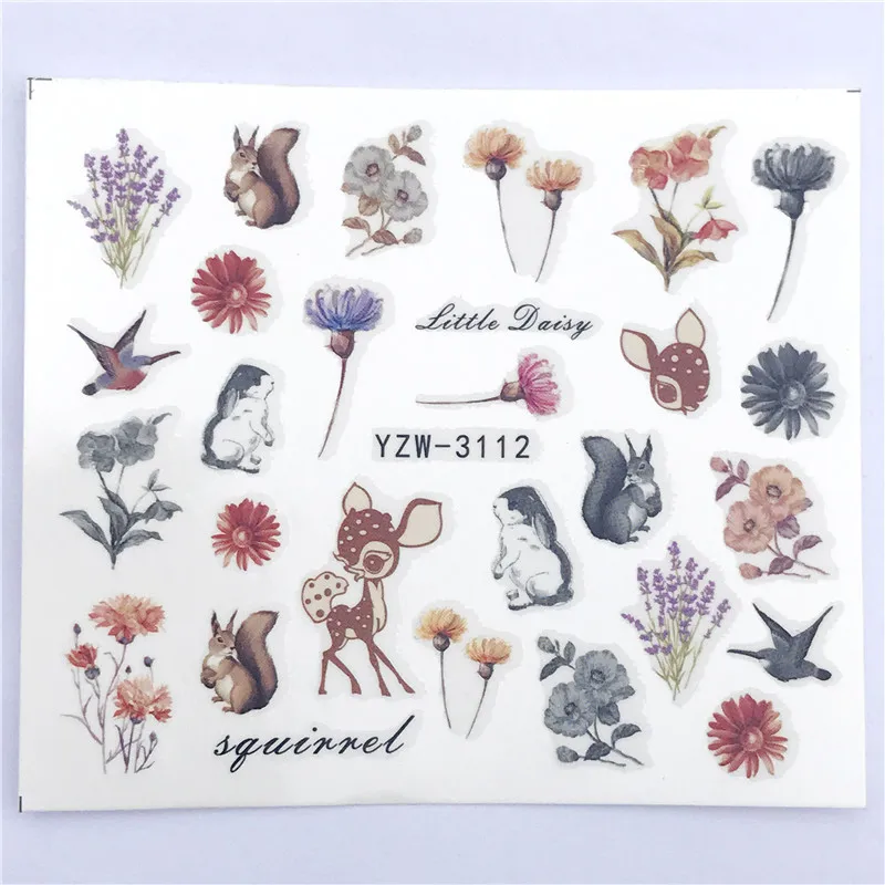 Модные наклейки для украшения ногтей и цветочным принтом в стиле сделай сам белка олень воды ползунки маникюр декор Акварельные переводные наклейки для ногтей аксессуары