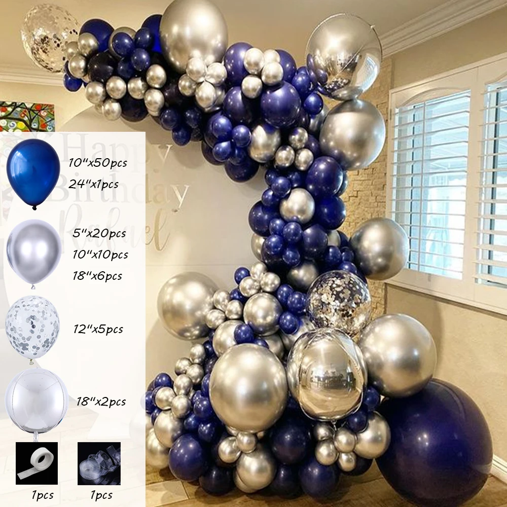 96 шт. светящиеся синие воздушные шары-гирлянды арки с серебристыми хромированными латексными шариками для свадьбы, дня рождения, украшения на новый год