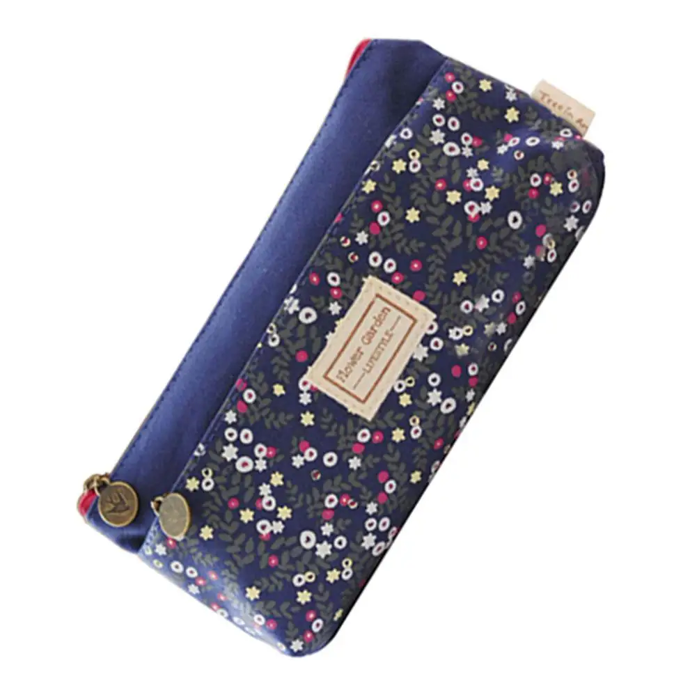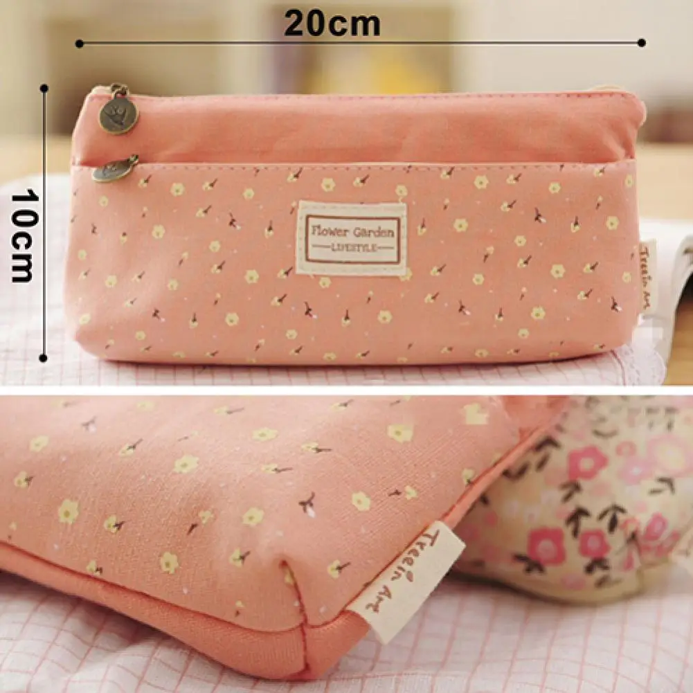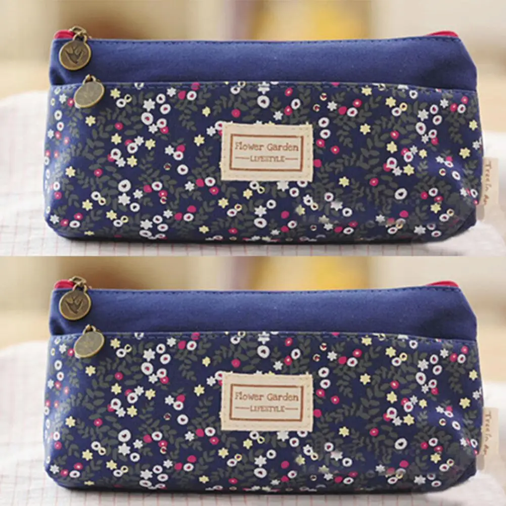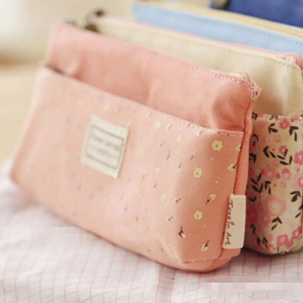 Цветочный холщовый чехол для косметики, кисти для макияжа, монеты, сумка на молнии, кошелек Kwaii. Набор канцелярских принадлежностей