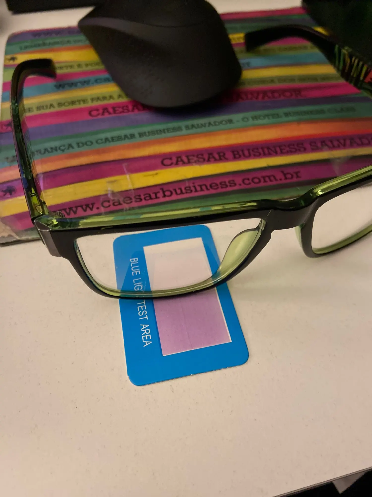 Я получил очки. Я проверил, блокирует ли он синий экран. Я не замечал никаких изменений. Оправа очков изготовлена из барчатой пластмассы. Очки очень жирные. Не прикасайтесь к стеклу. Какие преимущества очков, я не отвечаю. Может потребоваться больше времени для подделки передней части экрана, чтобы почувствовать преимущества очков на глаза.