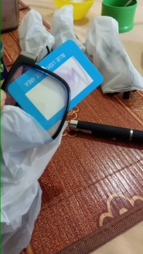 Синий свет в комплект не входит. Нет возможности проверить очки. Поэтому я не буду использовать его