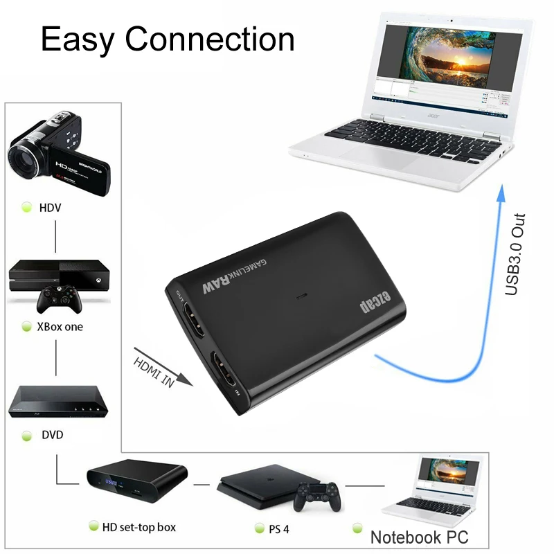 Карта видеозахвата, 1080p, 60 кадровс, HDMI на USB 3,0, 2,0