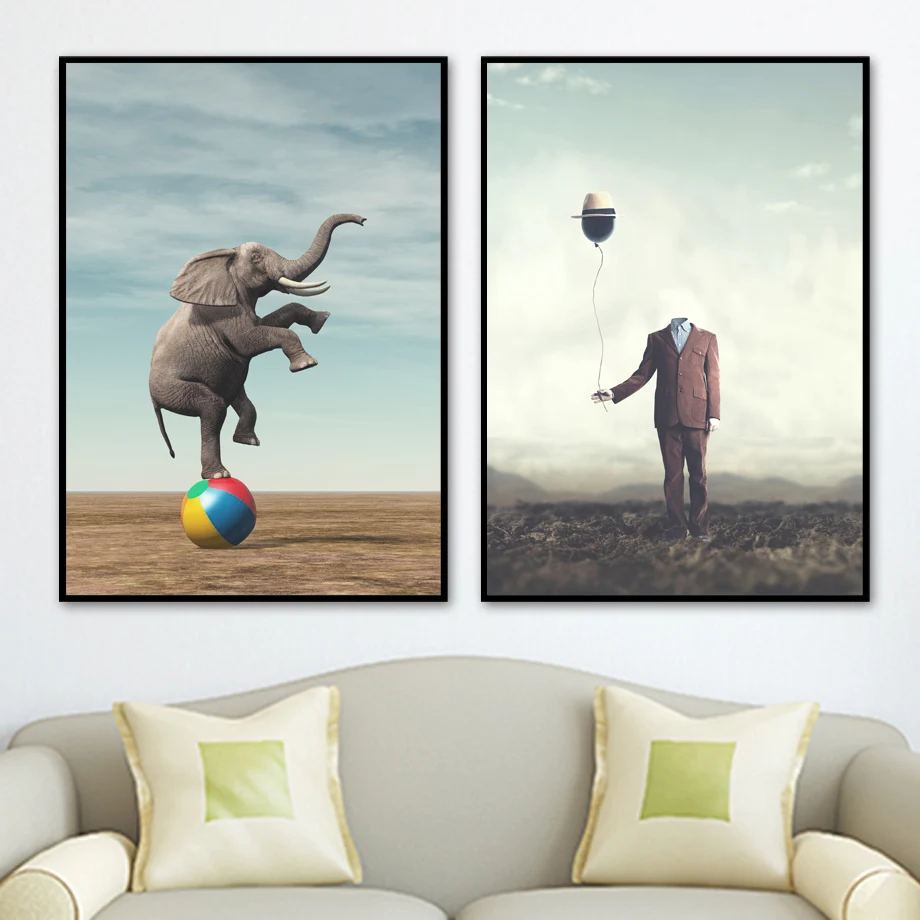 Сюрреализм слона, жирафа и других со стильным абстрактным изображением, холст картина дом арт Плакаты Спальня наклейки для коридора Nordic украшения