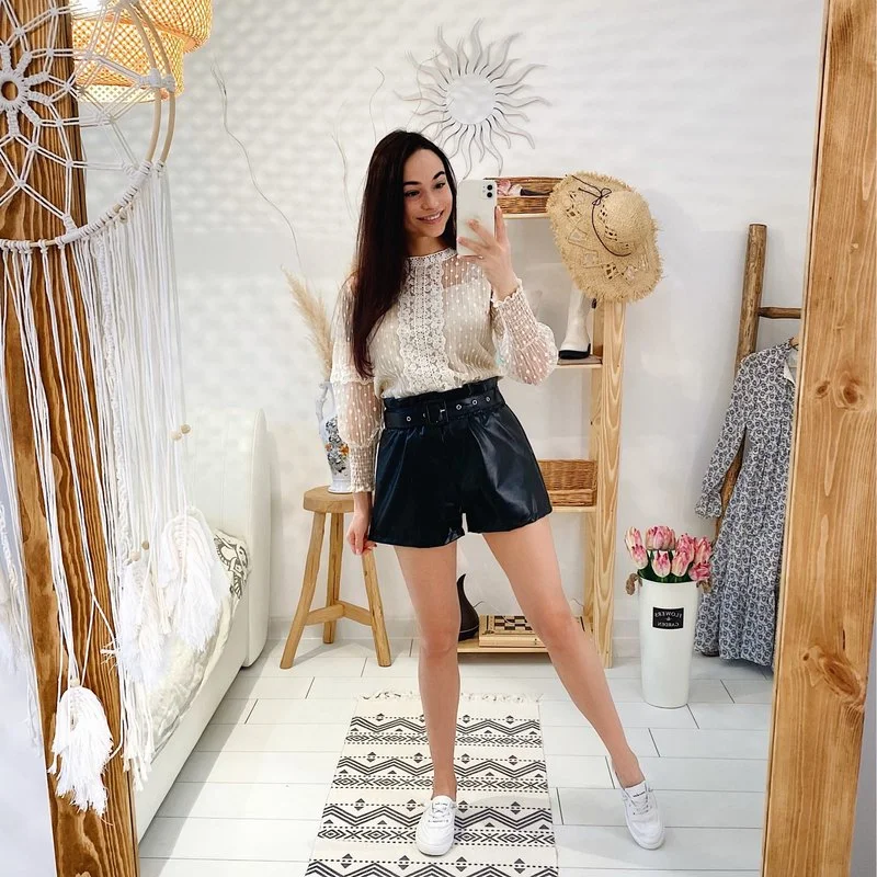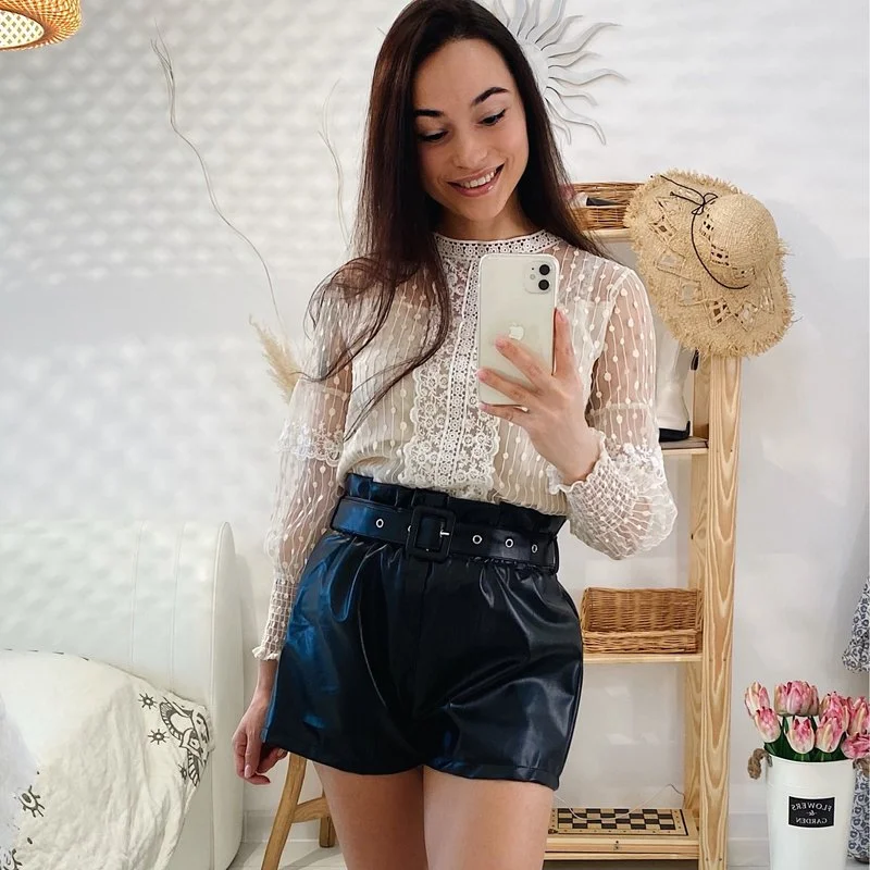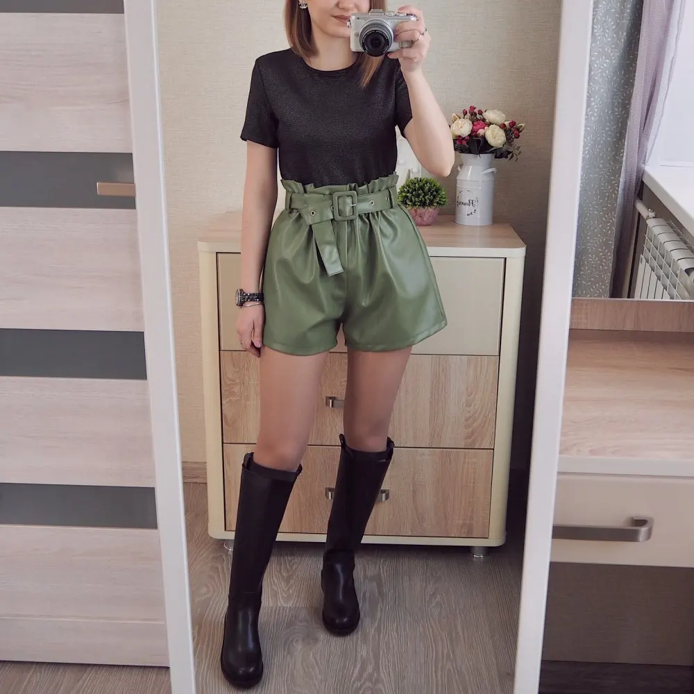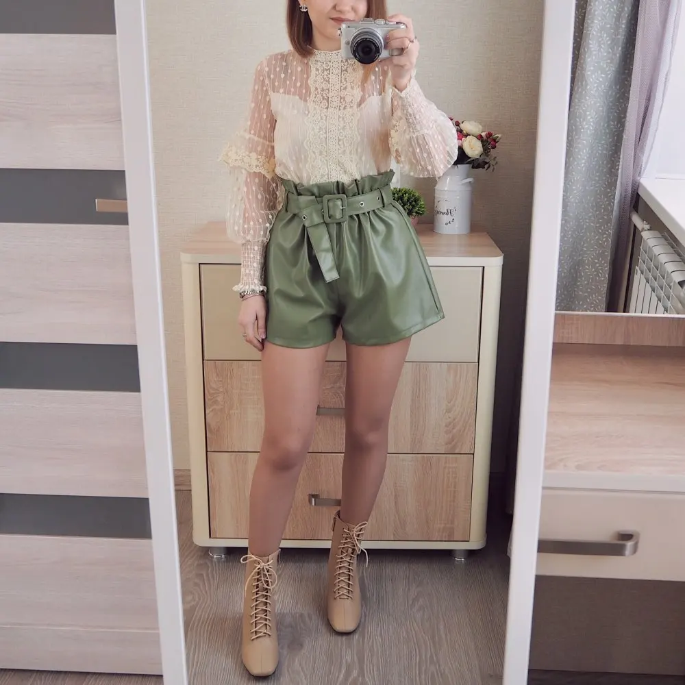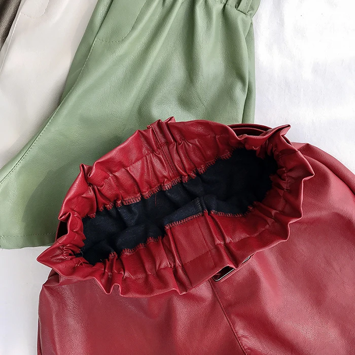 Шорты женские из искусственной кожи с высокой талией, повседневные свободные короткие штаны с широкими штанинами в стиле панк, весна-осень-зима 2021