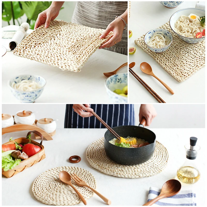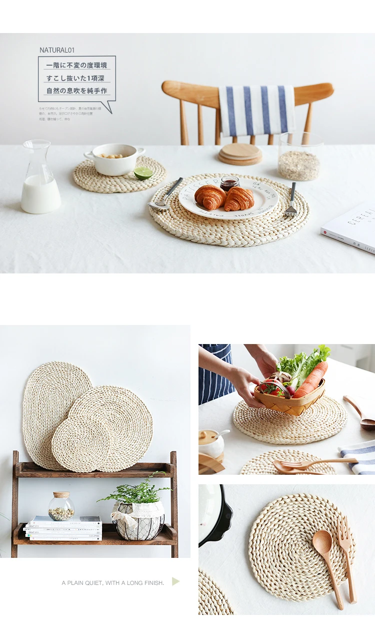 Круглый тканый коврик для столов натуральный стебель кукурузы, теплоизоляционный коврик естественного цвета для кофейных напитков, чашек, аксессуары для дома и кухни