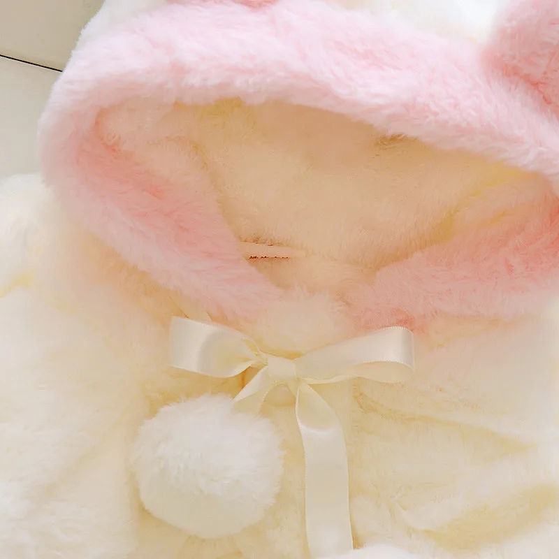 Для маленьких девочек одежда для детей с милыми заячьими ушками из плюша для принцессы осенне-зимнее пальто для девочек теплая куртка с капюшоном для малышей, куртка детская, Рождественская, верхняя одежда