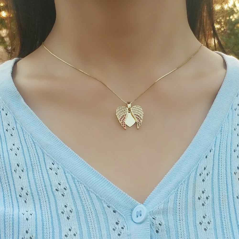 Крылья Ангела Guardian открытым сердцем Цепочки и ожерелья для женщин на День святого Валентина ювелирные изделия CZ камень циркония Цепочки и ожерелья сердце медальон очарование