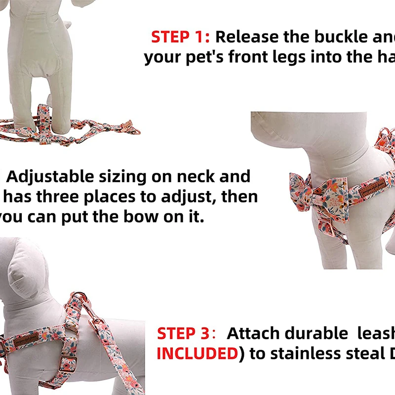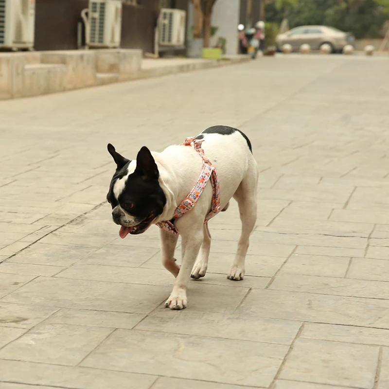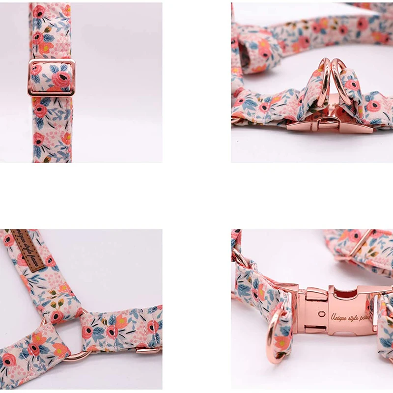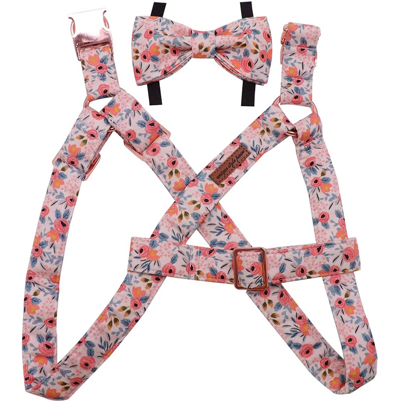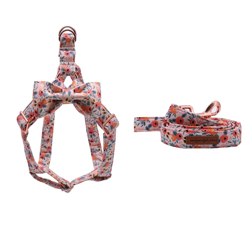 Розовая шлейка с цветочным рисунком для собак с бантом и обычным поводком для собак, Регулируемая пряжка, товары для домашних животных