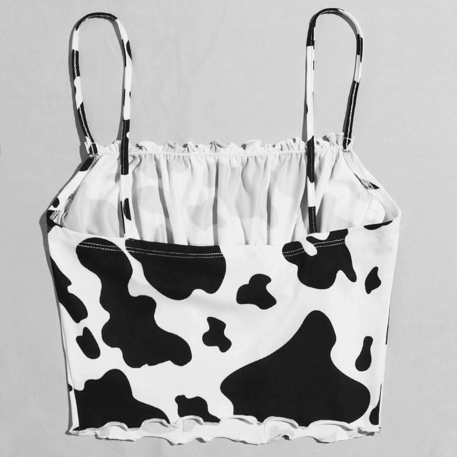 Сексуальный женский топ с рюшами, топ на бретелях с принтом коровы, Дамское сексуальное с открытой спиной, облегающий жилет, вечерние Клубные платья 2021, mujer camisetas