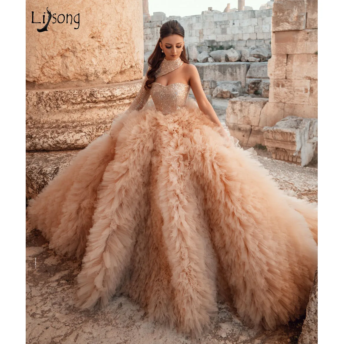 Роскошные очень пышные тюлевые платья для выпускного вечера с длинным шлейфом, потрясающие женские вечерние платья, арабские Дубаи для невесты, вечерние платья на заказ