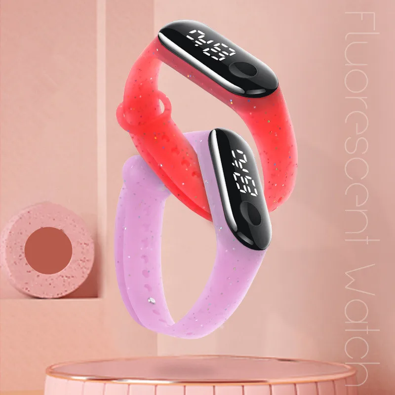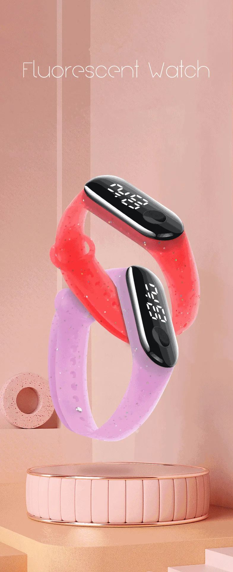 Модные флуоресцентные силиконовые детские часы для девочек, спортив...