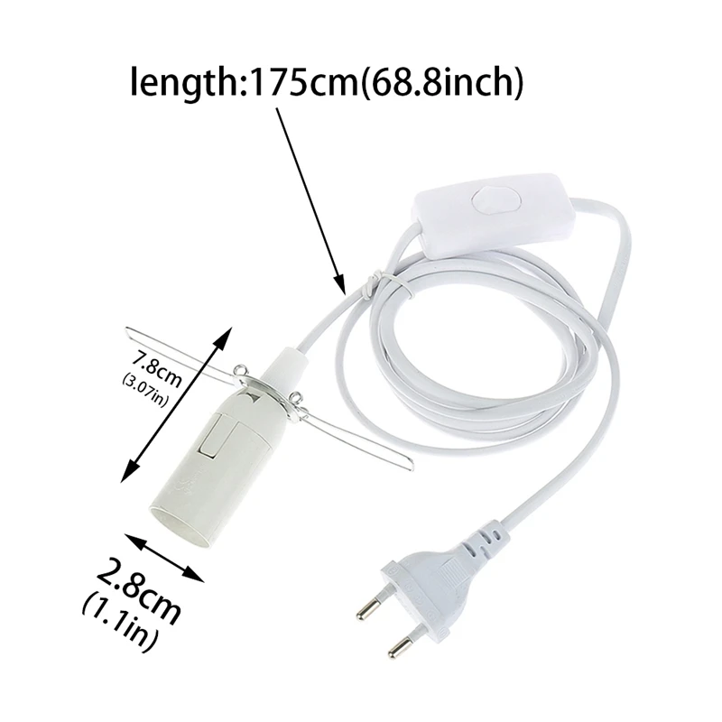 Кабель питания 1,8 м, Цоколи для ламп E14, штепсельная вилка европейского стандарта с проводом переключателя для Светодиодный весок, светодиодных ламп E14, подвесной патрон