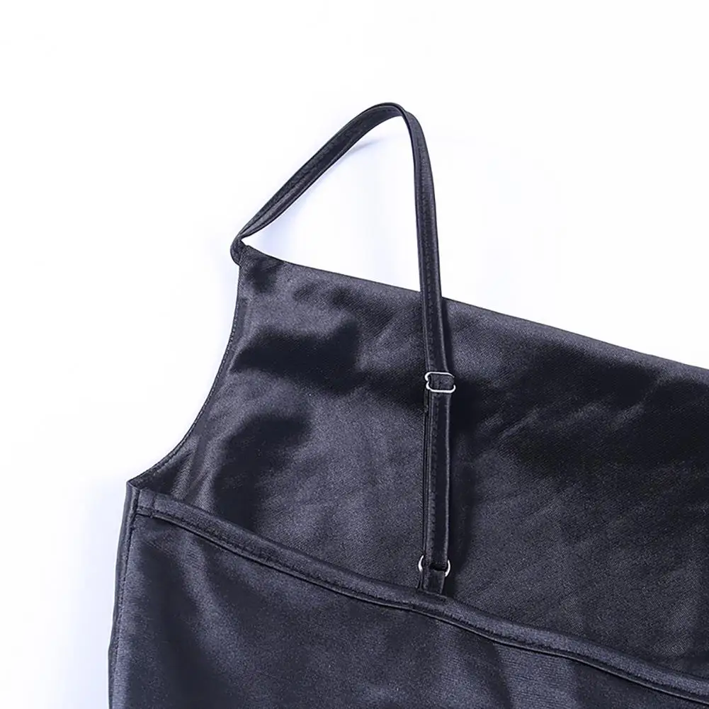 Женское шелковое платье без рукавов, черное облегающее платье с V-образным вырезом и высоким разрезом на бретелях, лето 2021