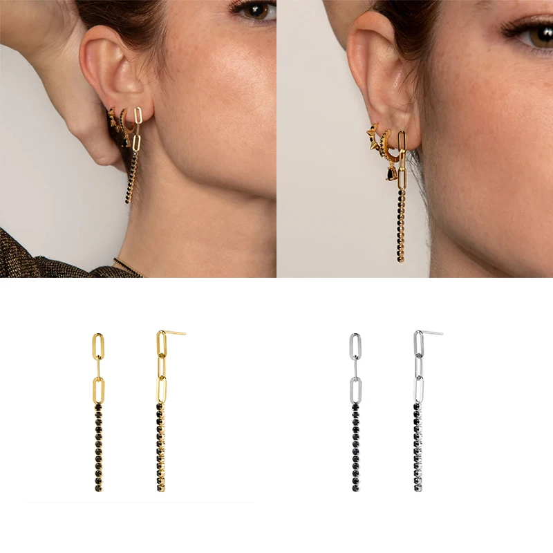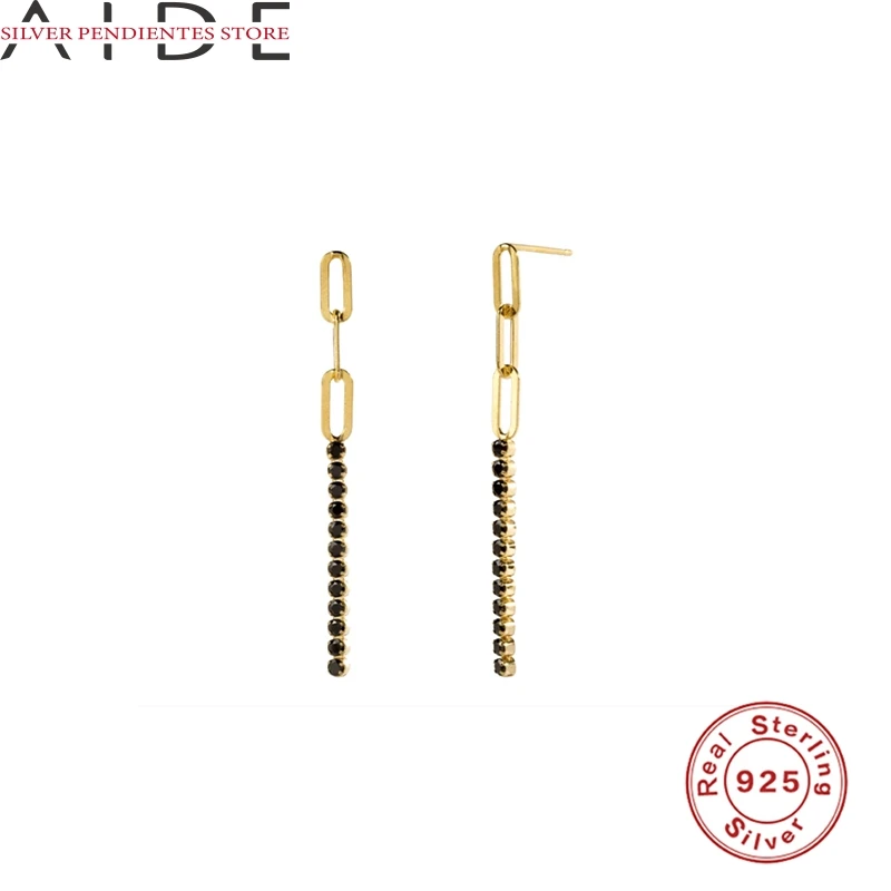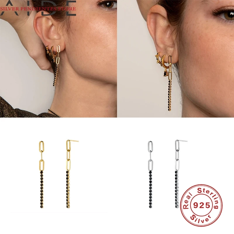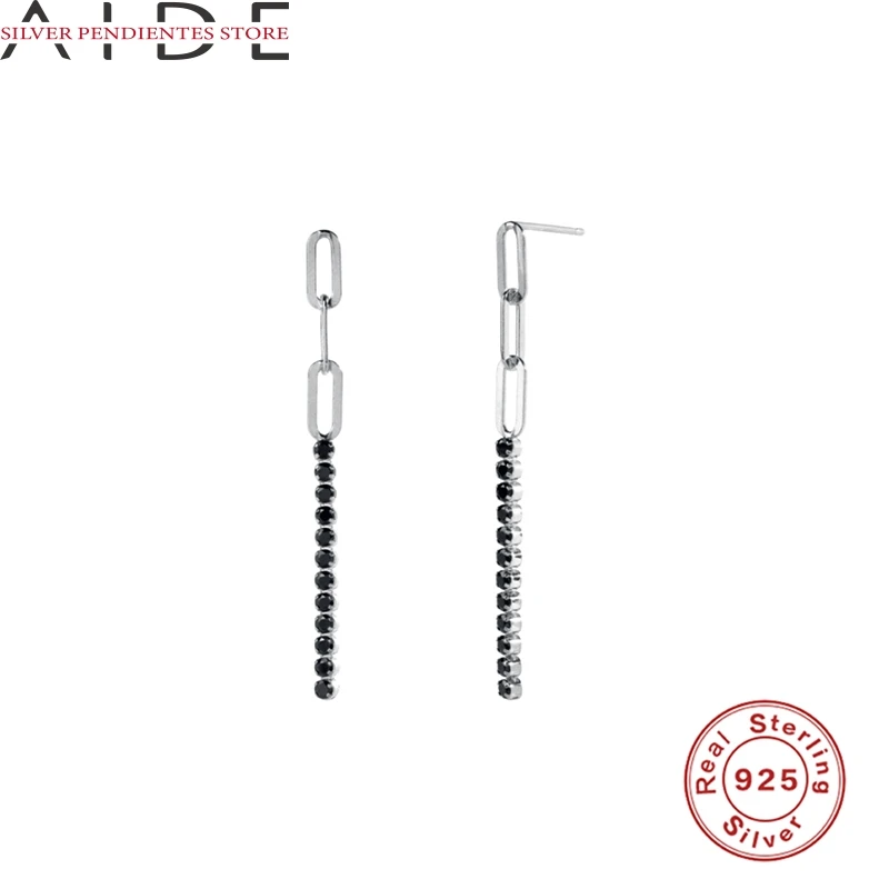 AIDE простой 925 стерлингового серебра Белый циркония серьги комплект ювелирных изделий для женщин длинные скрепки цепь из звеньев с контрфорсом серьги ювелирные изделия Aretes De Mujer; Большие размеры
