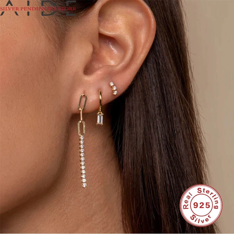 AIDE простые серьги из стерлингового серебра 925 пробы с белым цирконием, набор для женщин, длинные серьги-гвоздики с зажимом, ювелирные изделия