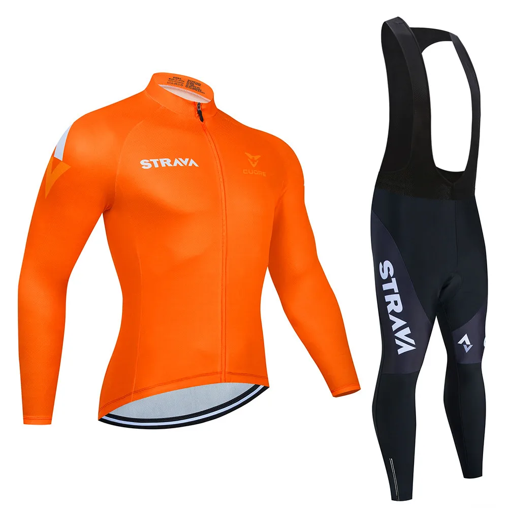 2021 Профессиональный велосипедный комплект из Джерси STRAVA с длинным рукавом горный велосипед Велоспорт одежда Дышащая MTB велосипедная одежда костюм для мужчин