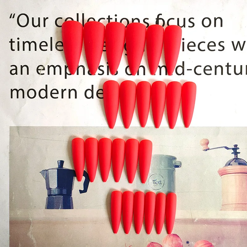 Накладные ногти многоразовые, сверхдлинные, матовые, красные, 24 шт., ультратонкие, с клеем