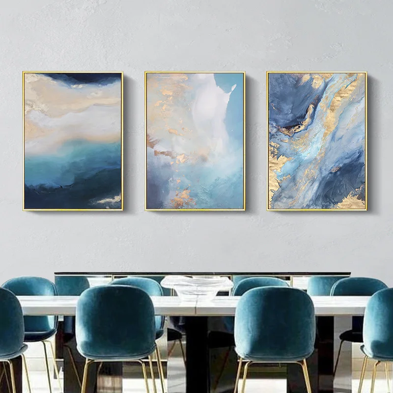 Абстрактный постер из золотой фольги, пейзаж голубого океана, скандинавский настенный художественный Рисунок, печать на холсте, современный постер, декор для гостиной