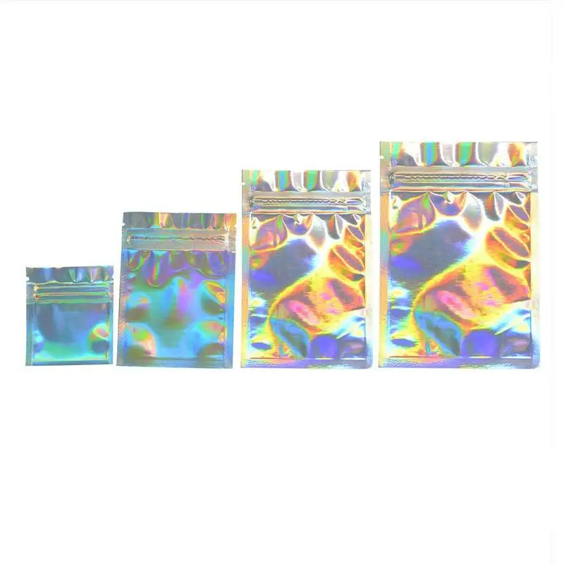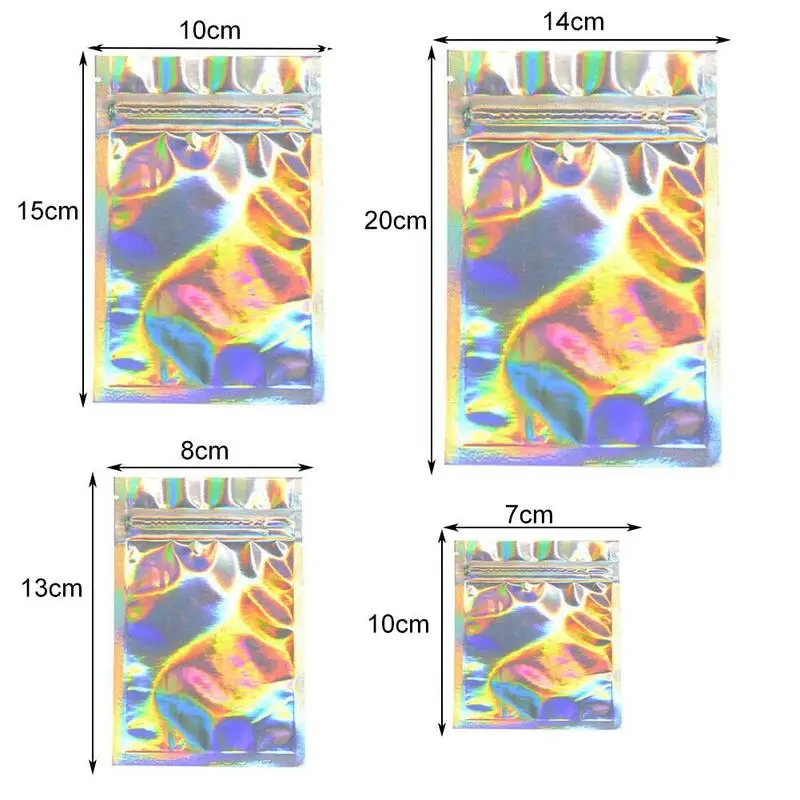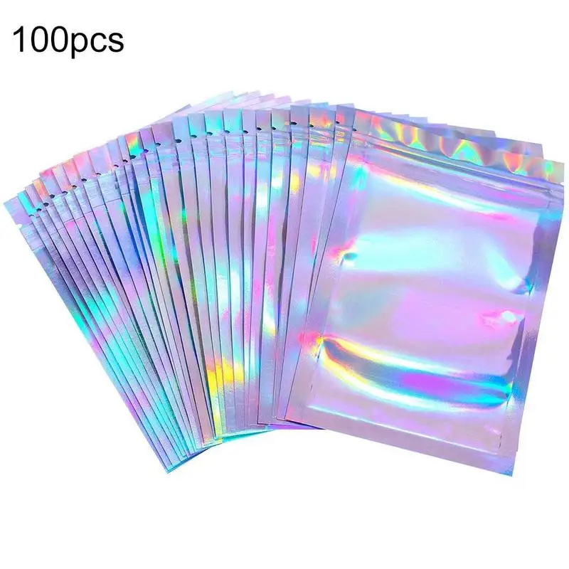 100 шт. SML плоская косметичка с застежкой-молнией для ванной, соли, одна мини алюминиевая прозрачная боковая фольга, голографическая фотография