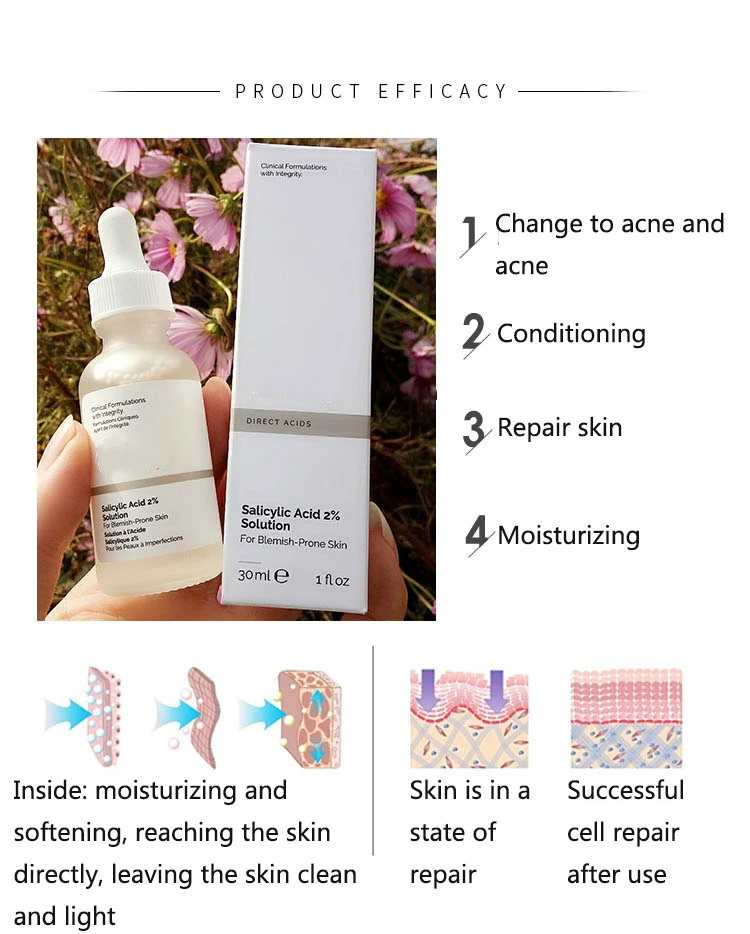 30 мл салициловая кислота 2% раствор удаляет акне Сыворотка для лица сжимает пор увлажняющая эссенция выцветание Пятна осветляет уход за кожей лица макияж