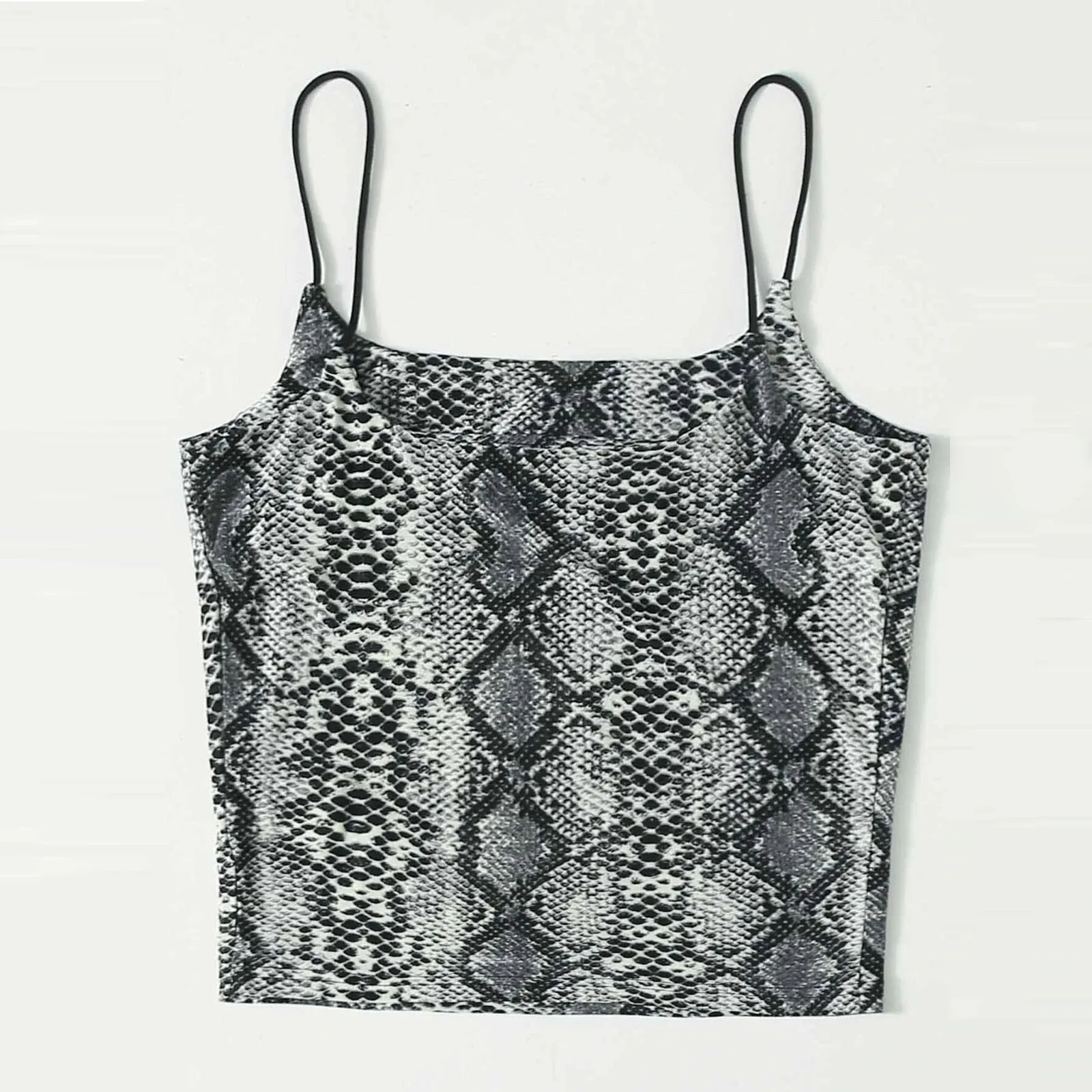 Женский короткий топ на бретелях с принтом змеиной кожи, укороченный топ с открытой спиной для вечеринки, Клубная одежда для девочек-подростков, A40