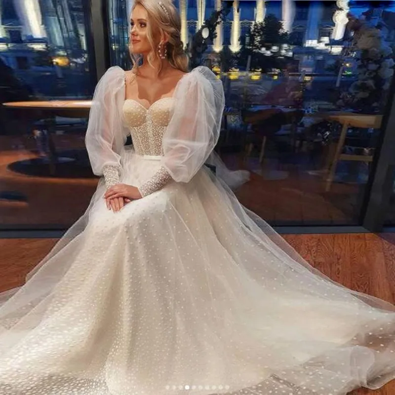 Женское свадебное платье со шлейфом, Прозрачное платье с длинными р...