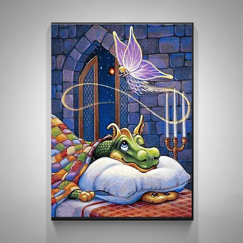Квадратнаякруглая Алмазная 5D картина сделай сам, вышивка крестиком мультяшный дракон, мозаика 3D, подарок для украшения дома
