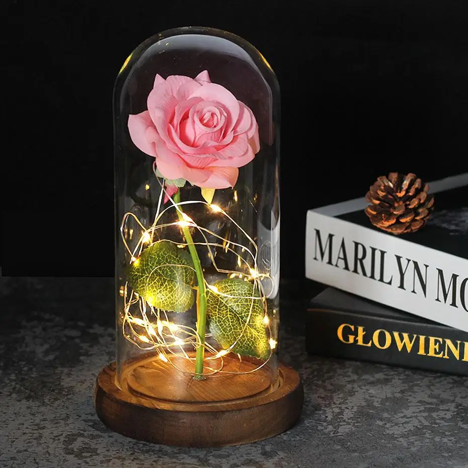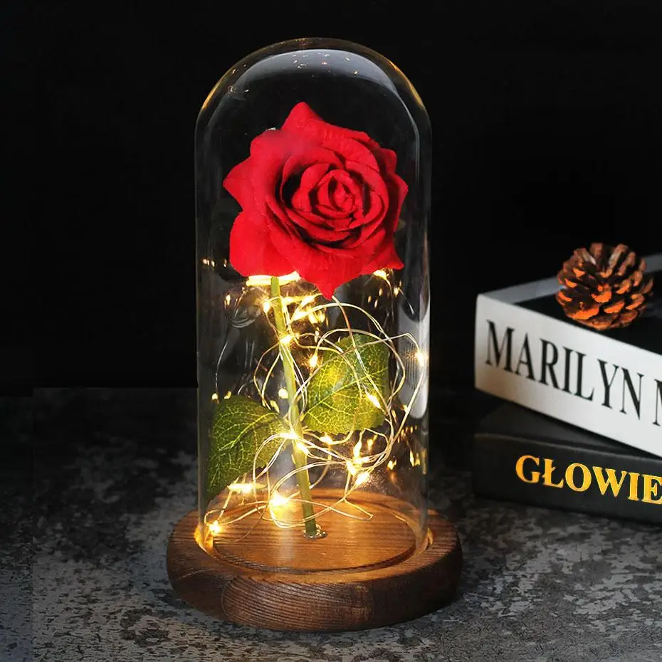 Искусственная вечная роза светодиодный Ной подсветкой красавица чудовище в стеклянном покрытии Рождество для матери День Святого Валентина Новогодний подарок