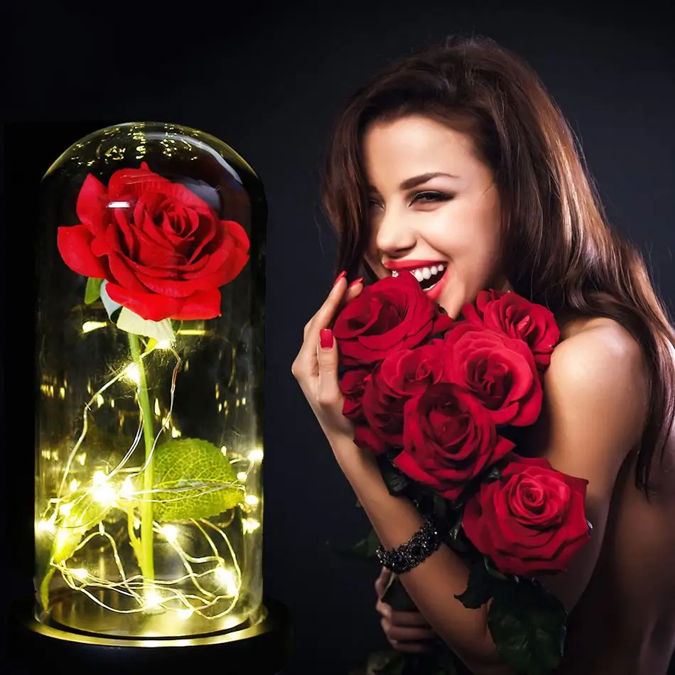 Искусственная вечная роза Красавица и чудовище, светодиодный купол ...