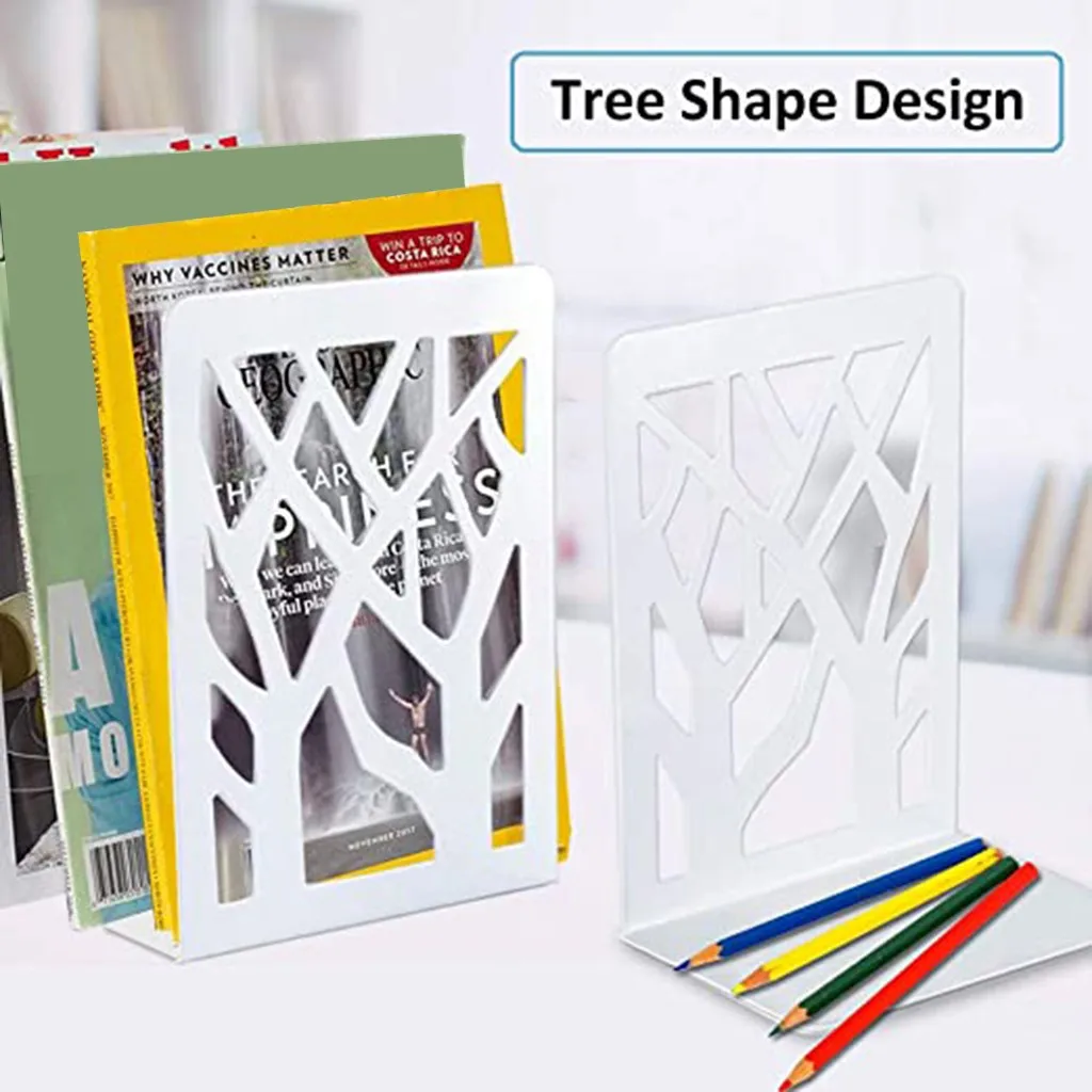 Книжные концы в форме дерева для полок, нескользящий кронштейн из белого металла, Тяжелая подставка для книг, стопор для офисных книг
