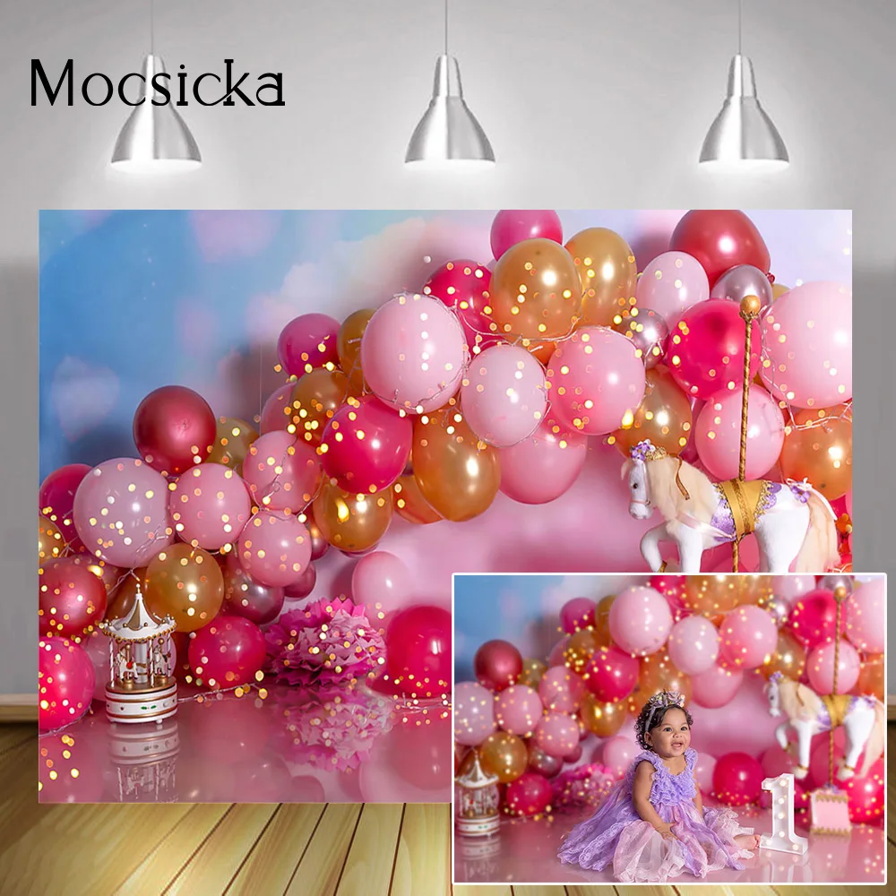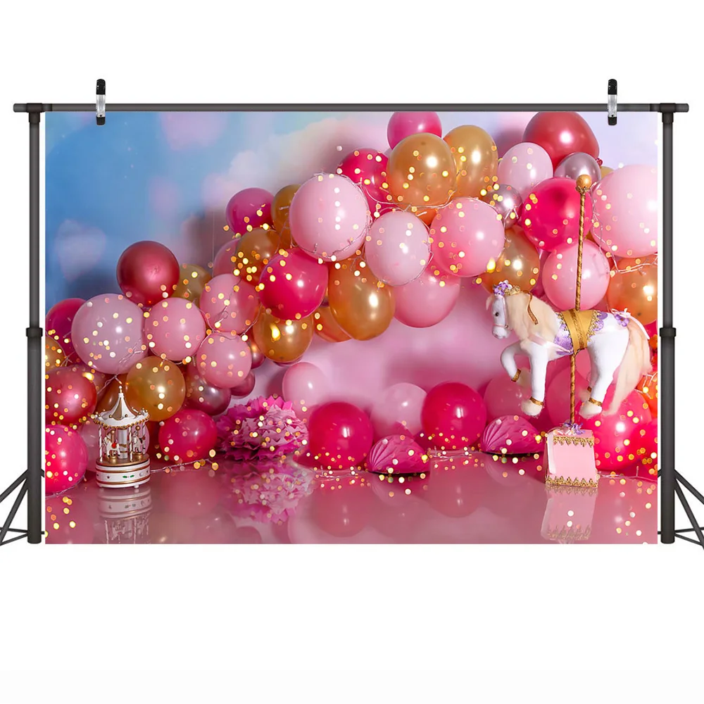 Радужный воздушный шар торт разбиваемый фон для фотографии карусель карнавал Дети День рождения Портрет фон для фотостудии