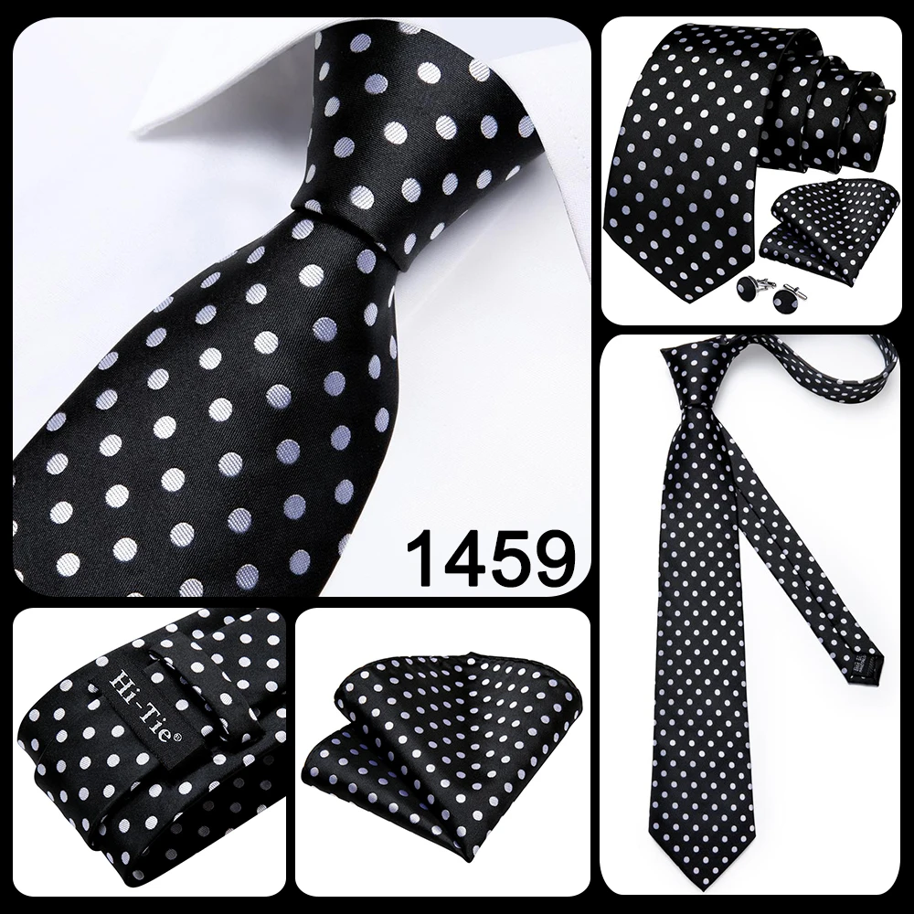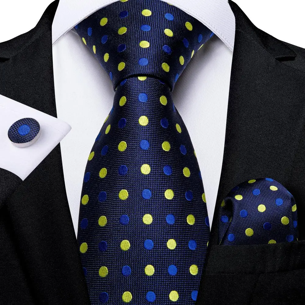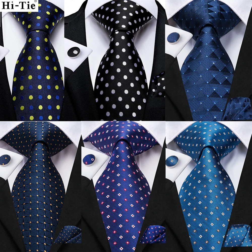 Hi-Tie темно-синий Шелковый Свадебный галстук в красный горошек для мужчин, качественные новые дизайнерские запонки, мужские подарочные галстуки, Модный комплект, Прямая поставка