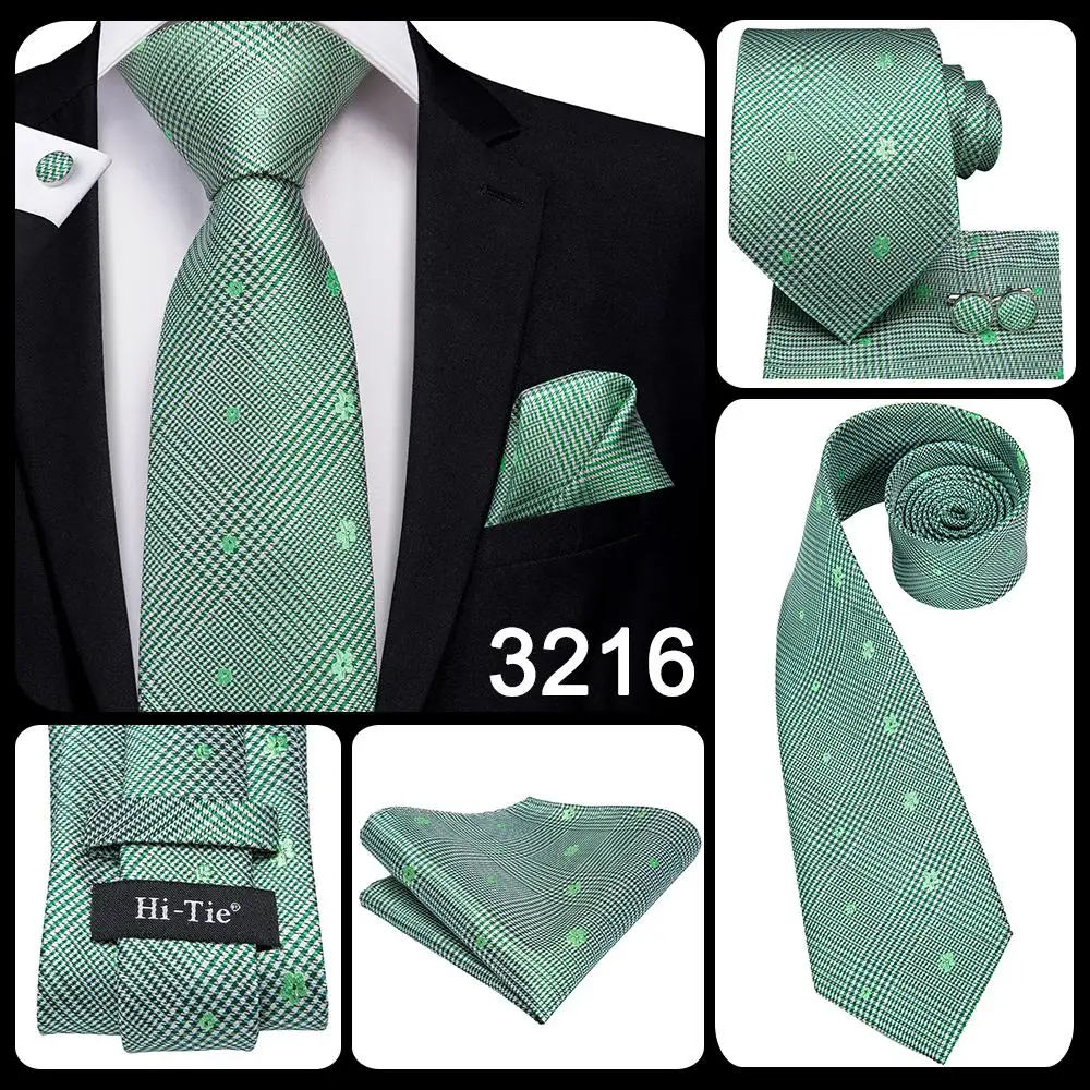 Hi-Tie Зеленый Синий подарок животных Шелковый Свадебный галстук дл...