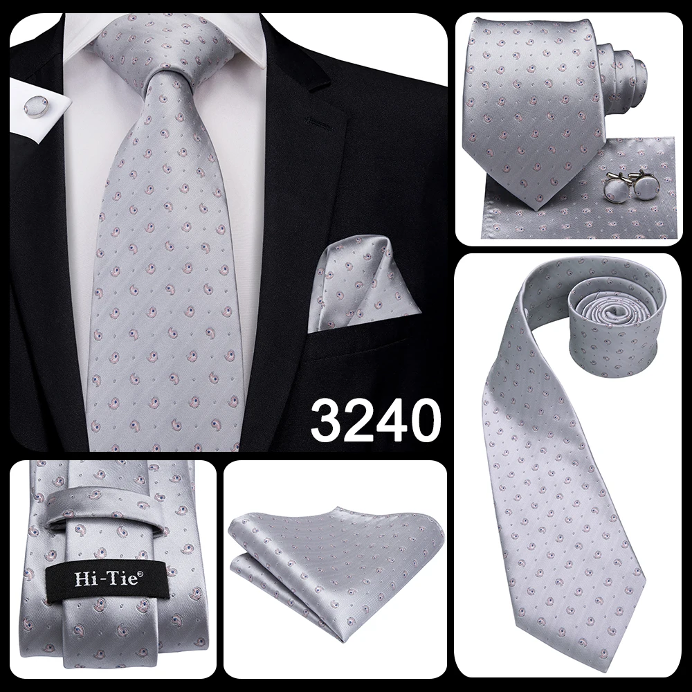Hi-Tie Роскошный Серебряный новинка мужской галстук Gravata Шелковы...
