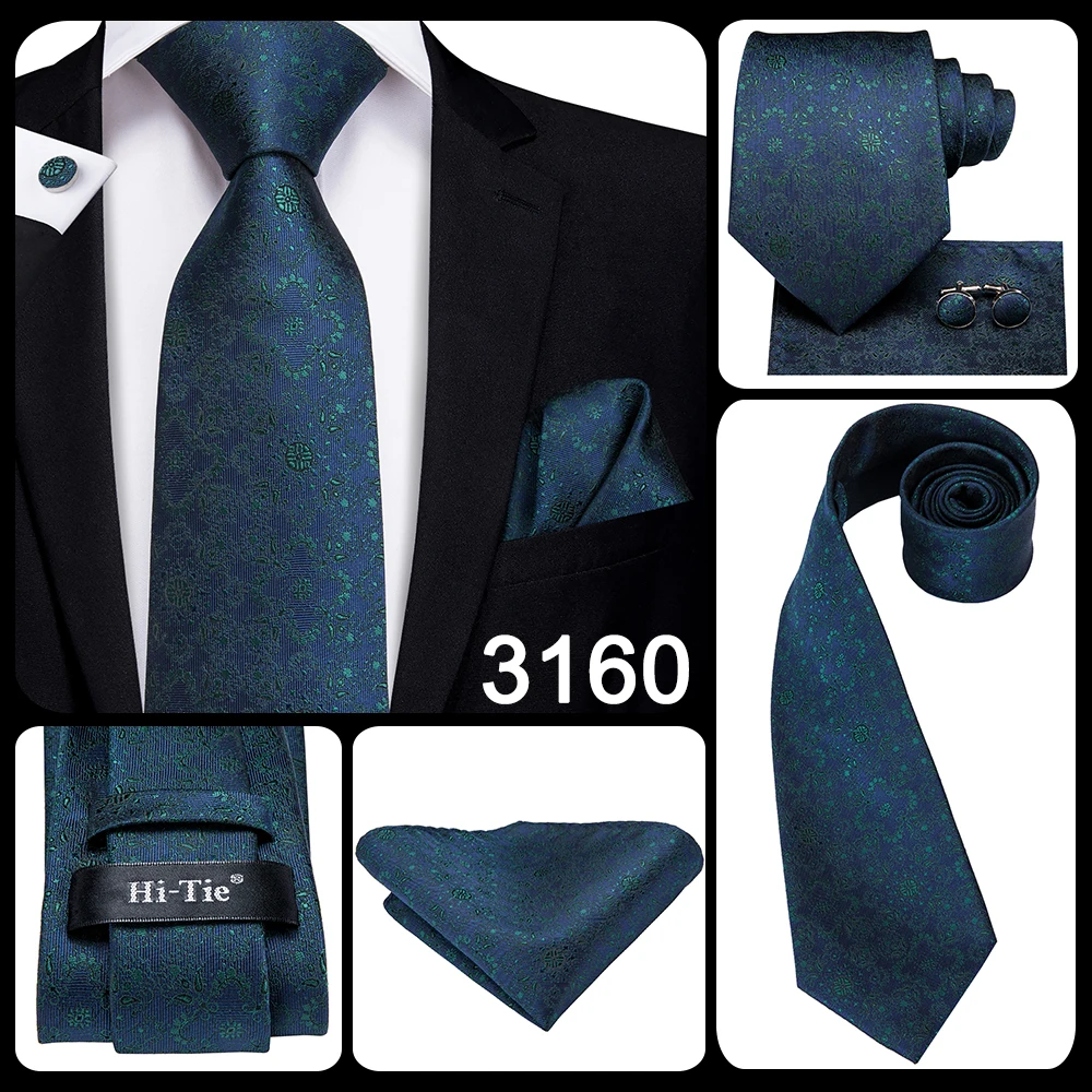 Мужской темно-зеленый галстук, Цветочный Шелковый Свадебный галстук...