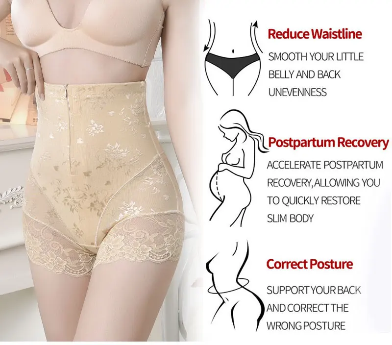 Корректирующее белье для женщин с завышенной талией, белье для послеродового коррекции живота, Утягивающее нижнее белье для подтяжки ягодиц, белье для похудения, кружевные трусы