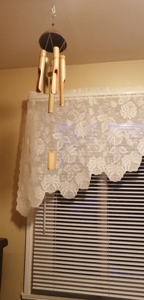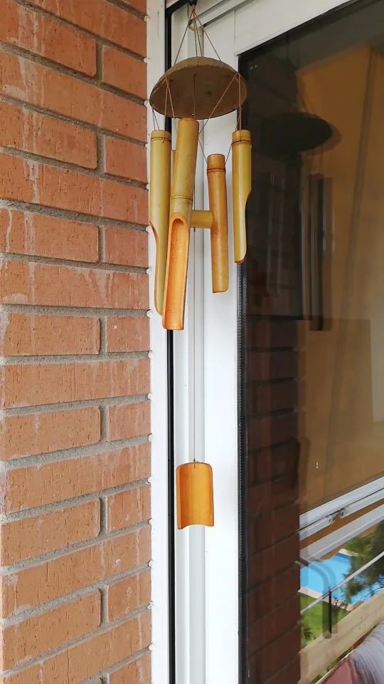 Колокольчик прибыл хорошо защищен, в очень хорошем состоянии, поэтому я сразу же повесил его. Он по-прежнему довольно тяжелый, поэтому ему все еще нужно много ветра, но «бамбук» звук очень приятный