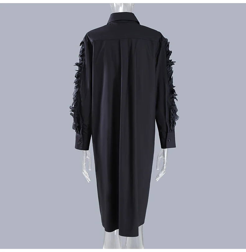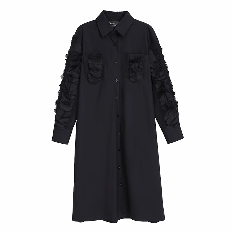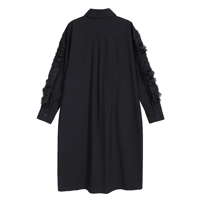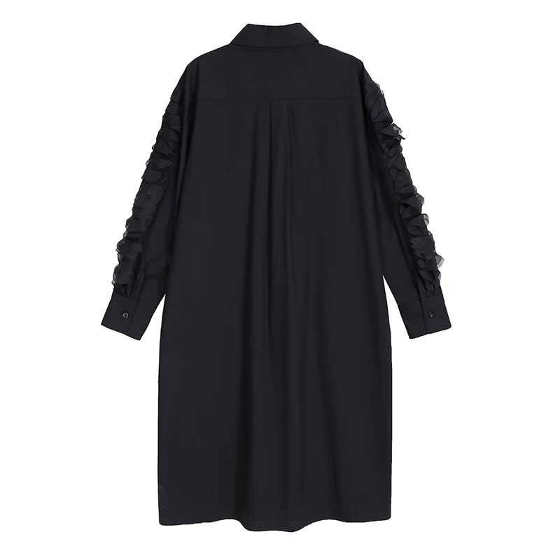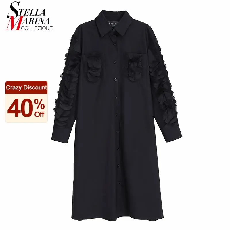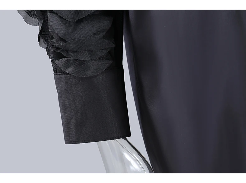 Женское платье-рубашка с длинным рукавом, однотонное черное элегантное платье-размера плюс с оборками, модель 8166 года на весну