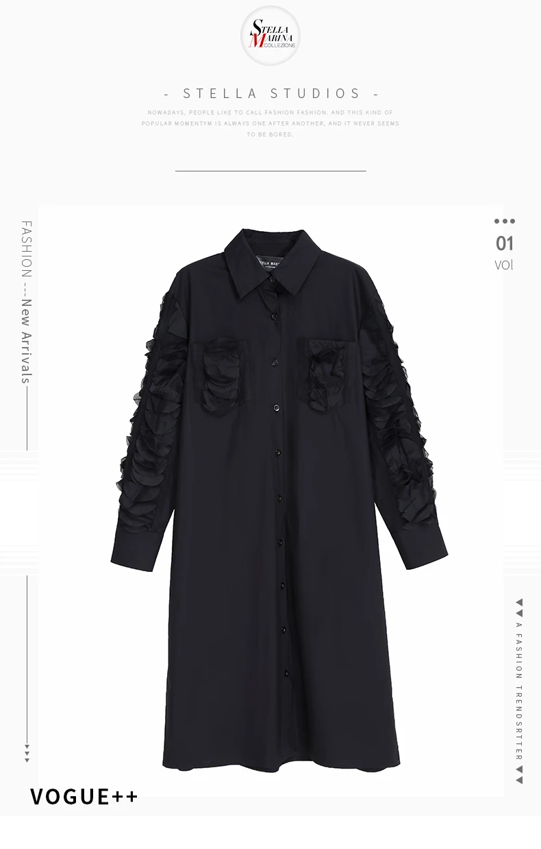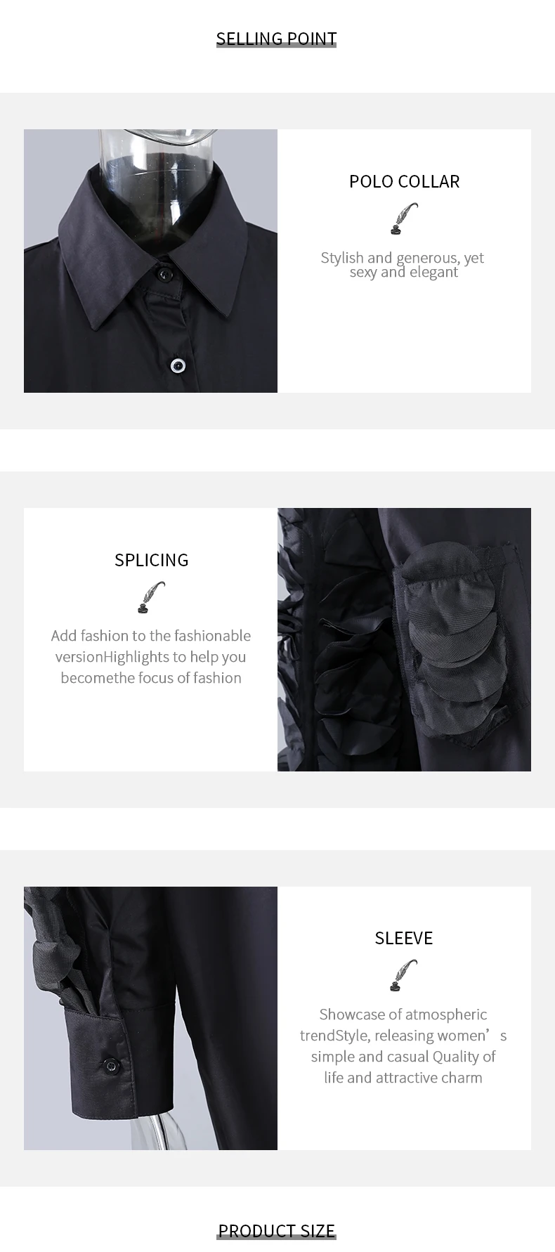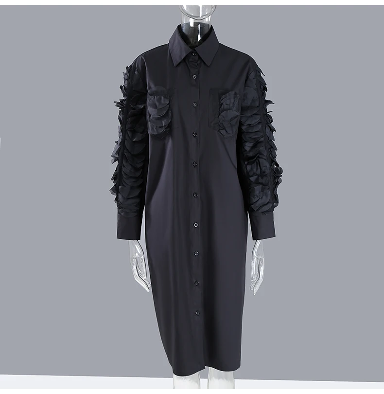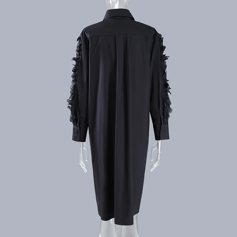 Женское платье-рубашка с длинным рукавом, однотонное черное элегантное платье-размера плюс с оборками, модель 8166 года на весну
