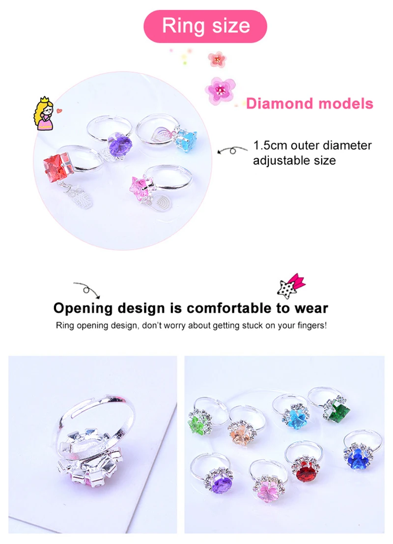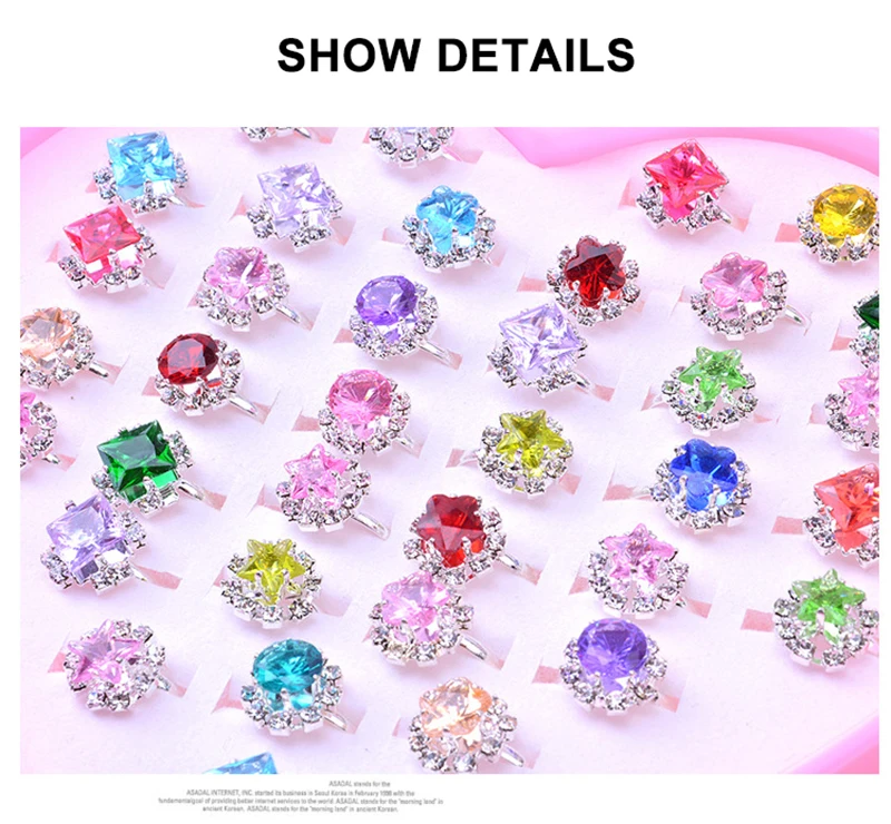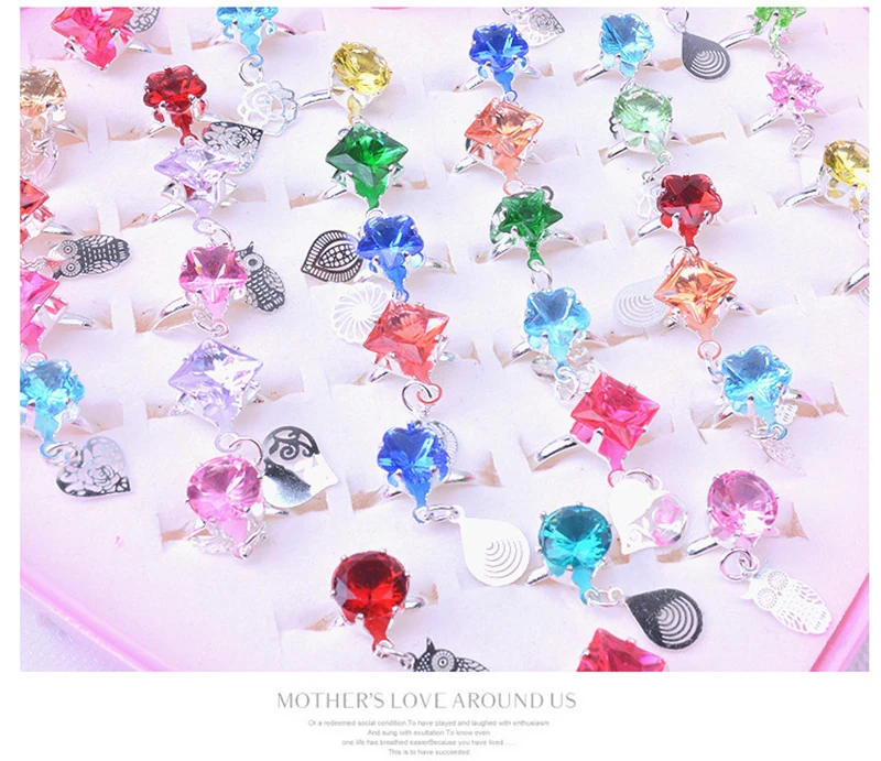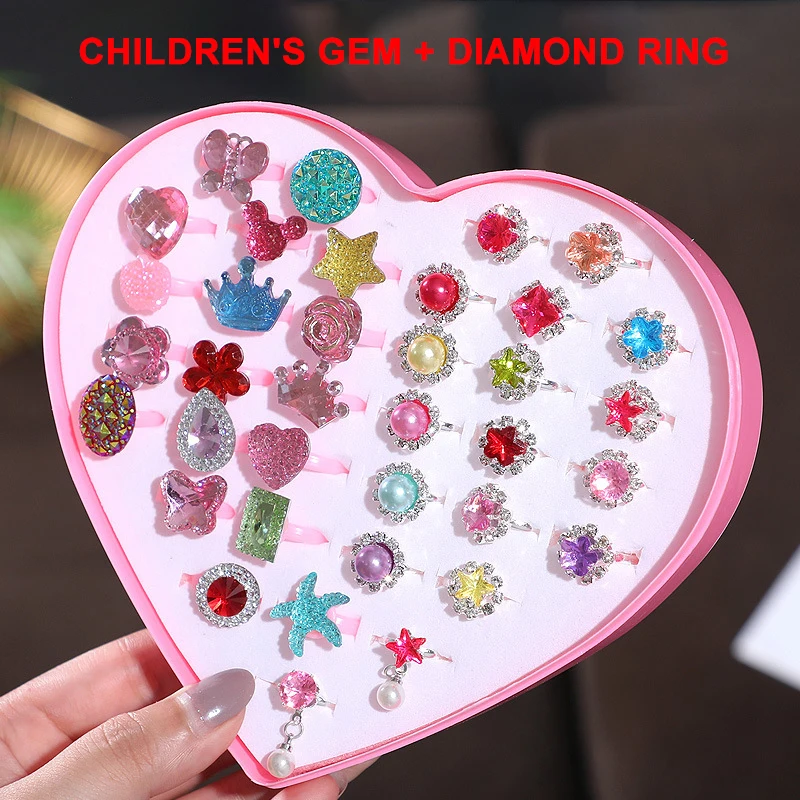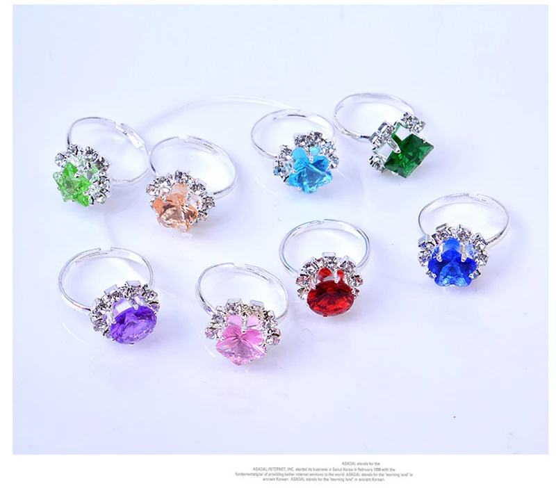 Набор колец для девочек, регулируемые пластиковые Колечки с кристаллами в форме сердца, 36 шт.компл.